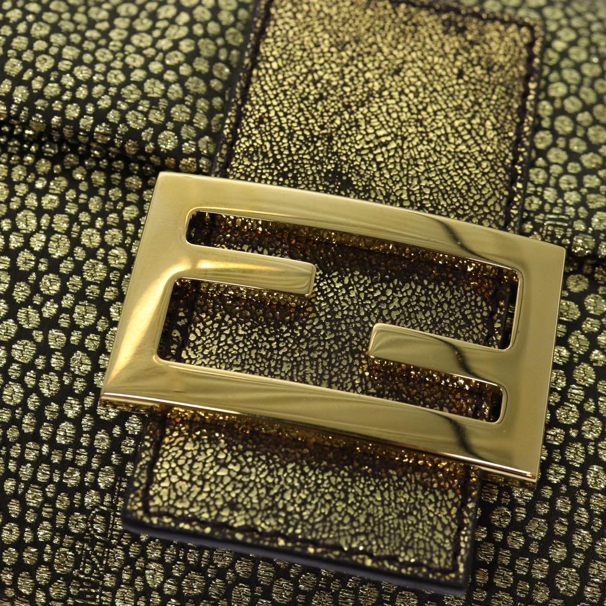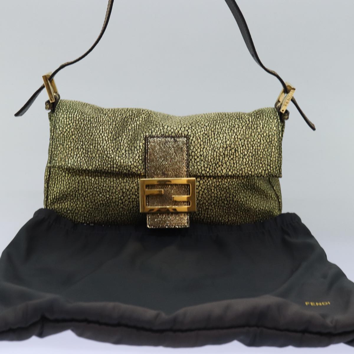 FENDI Mamma Baguette Shoulder Bag Canvas Gold Tone 40883613 Auth 74891AV