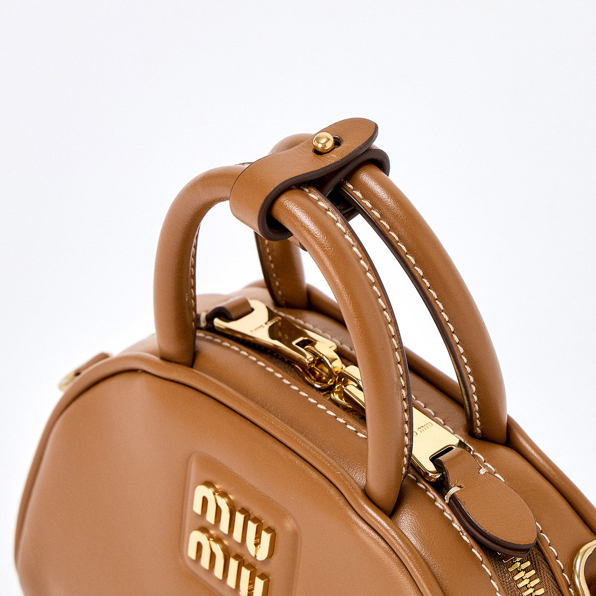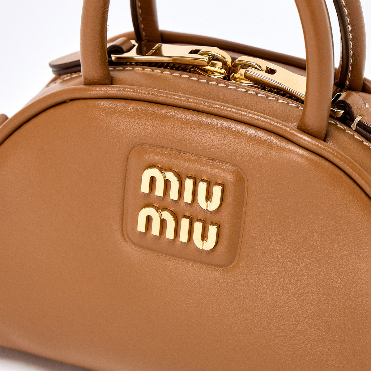 MIU MIU Hand Bag 5BP085 Camel Gold Calf Leather Auth