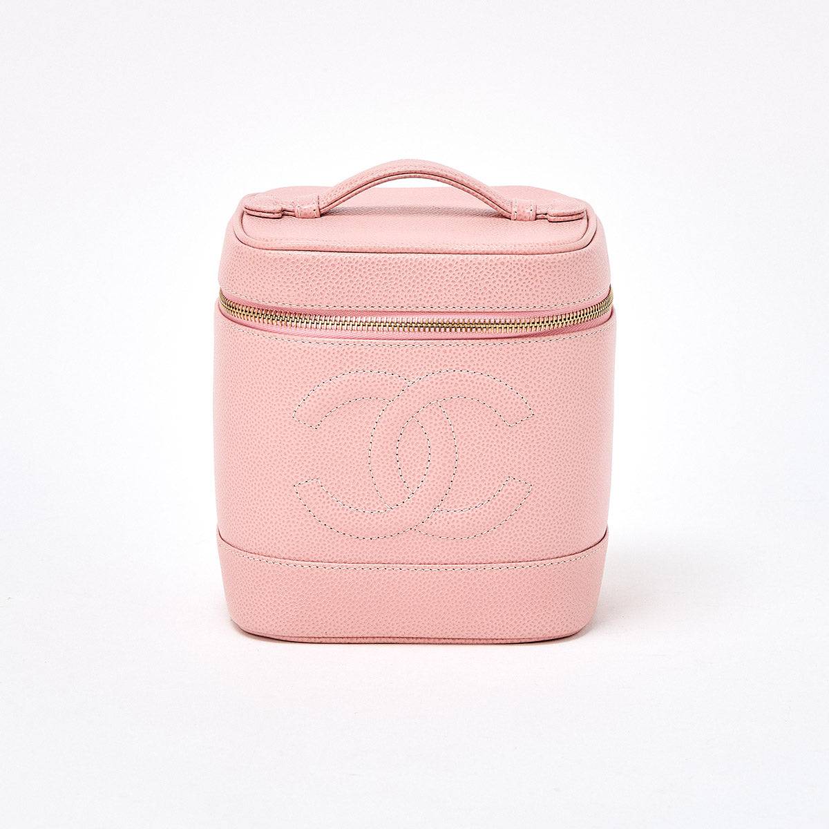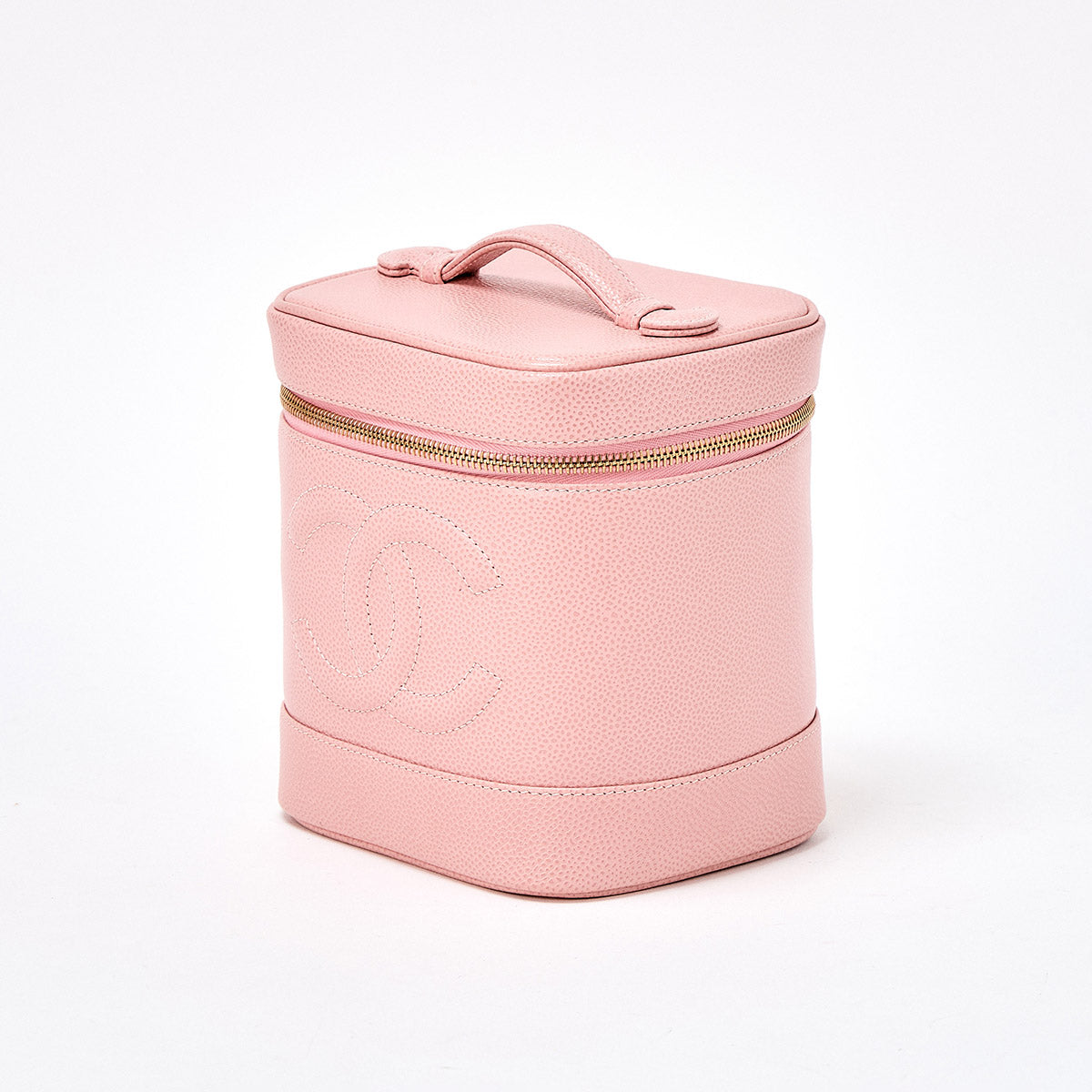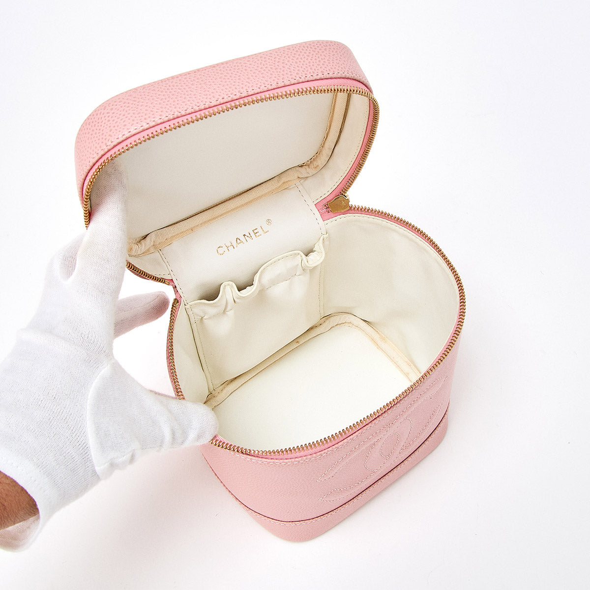 CHANEL COCO Mark 2003 Vanity Bag Pink Gold Caviar Skin Auth