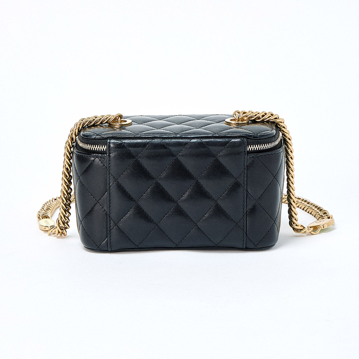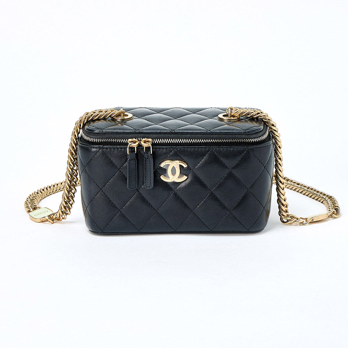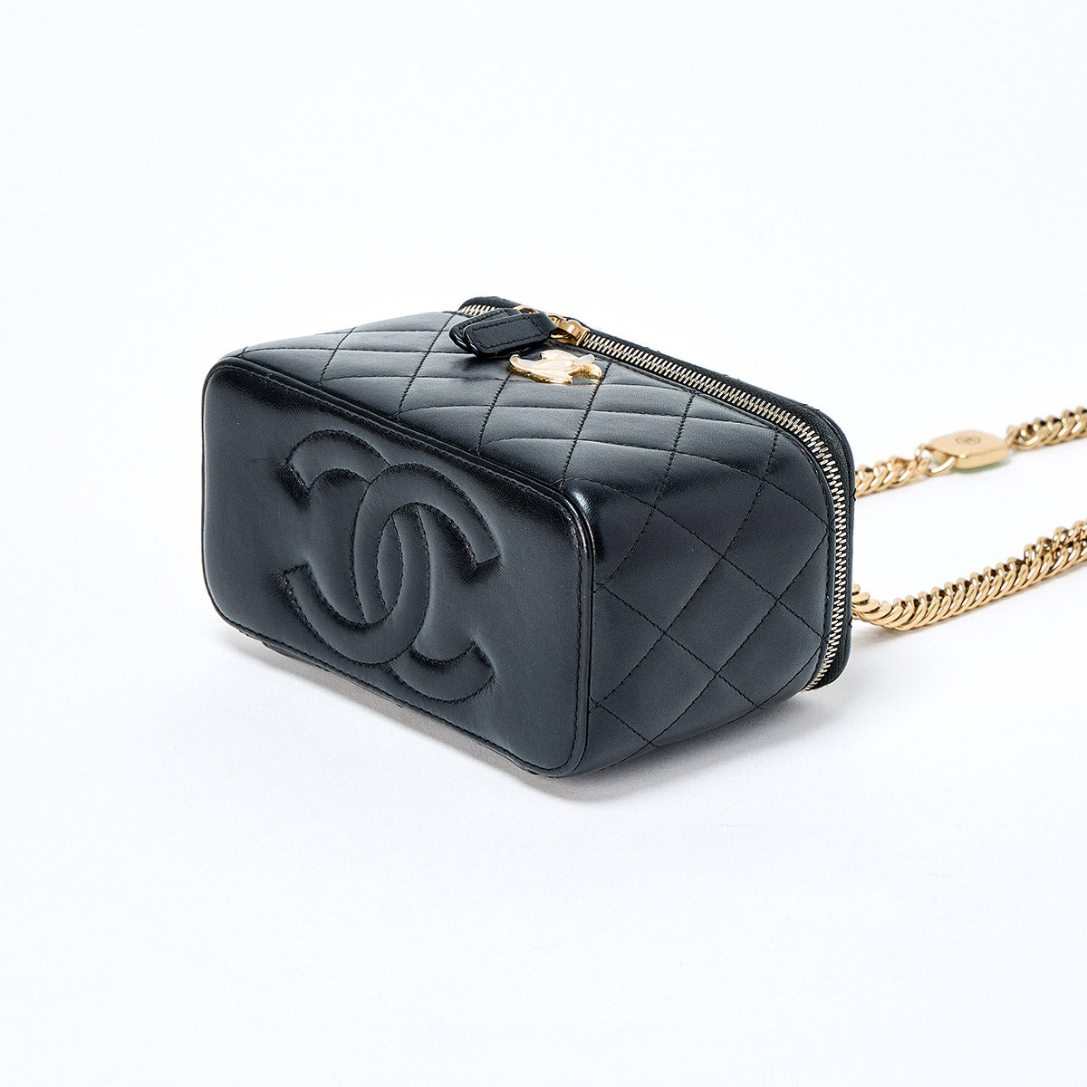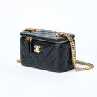 CHANEL Matelasse COCO Mark 2021 Vanity Bag Black Gold Lamb Skin Auth