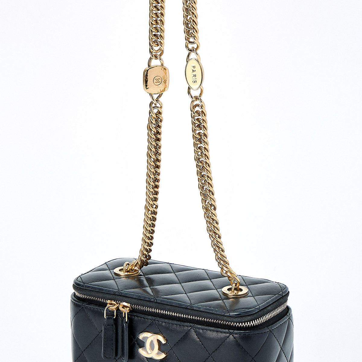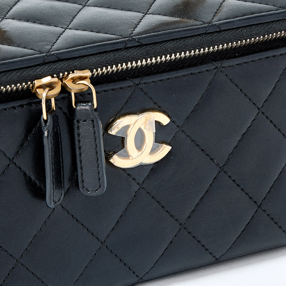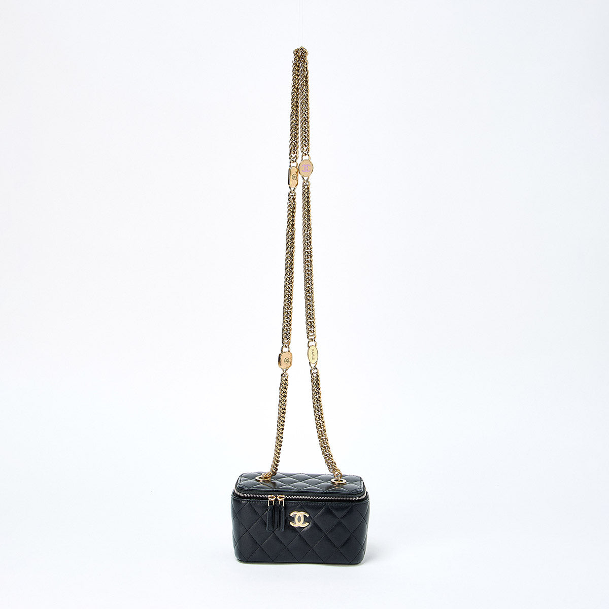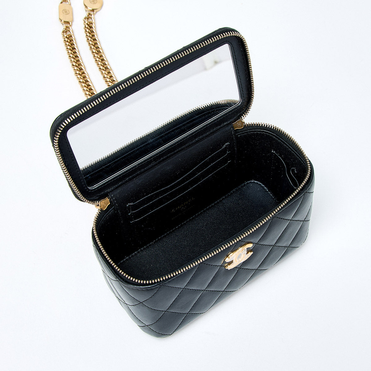 CHANEL Matelasse COCO Mark 2021 Vanity Bag Black Gold Lamb Skin Auth