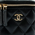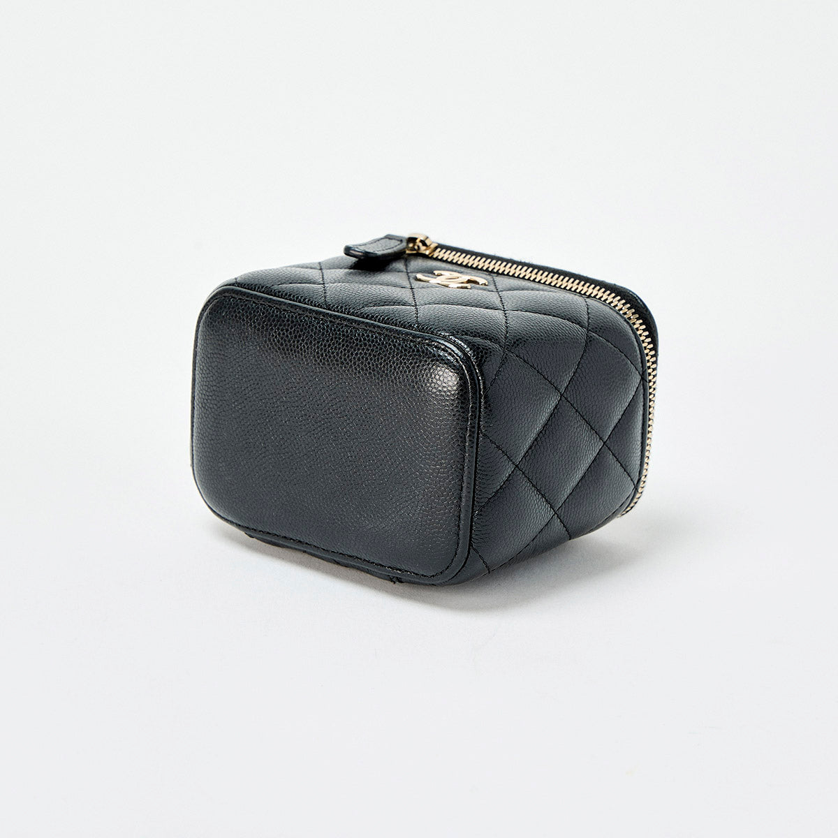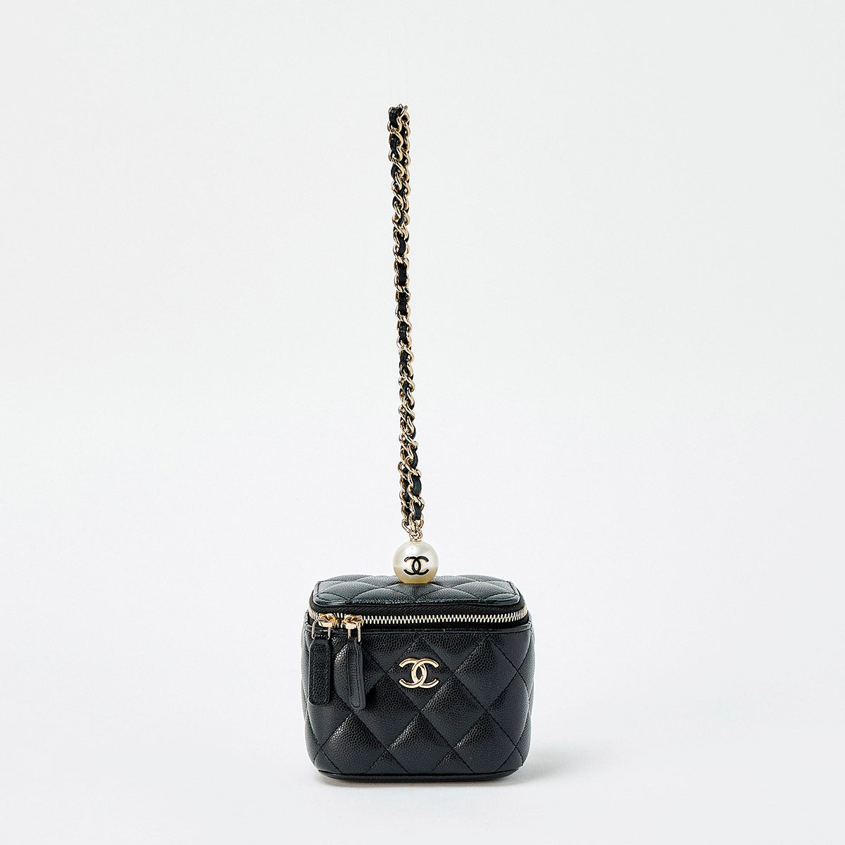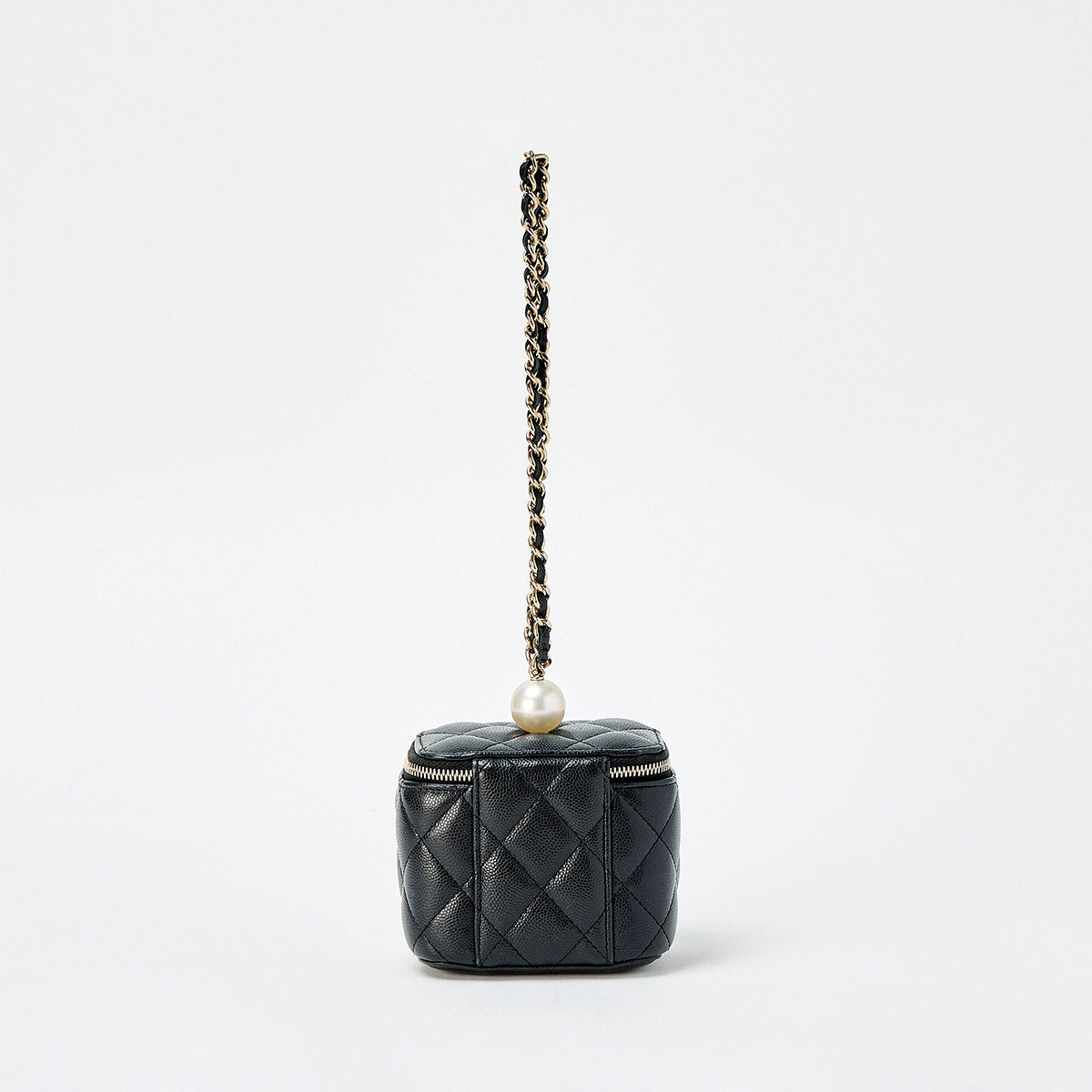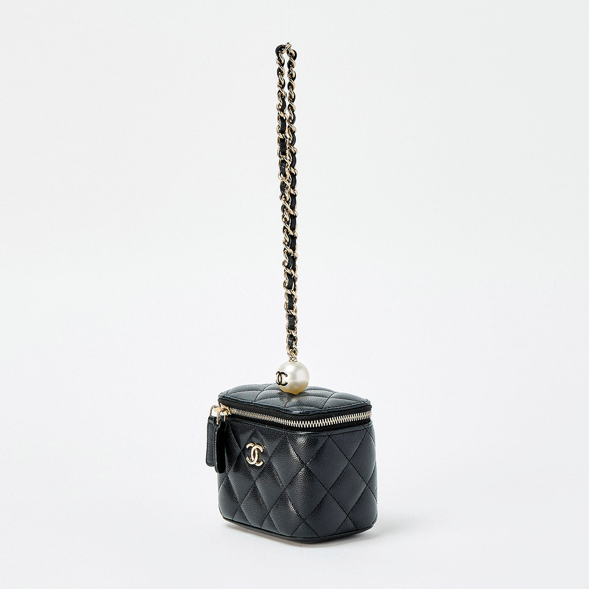 CHANEL Matelasse Coco Pearl 2021 Vanity Bag Black Gold Caviar Skin Auth
