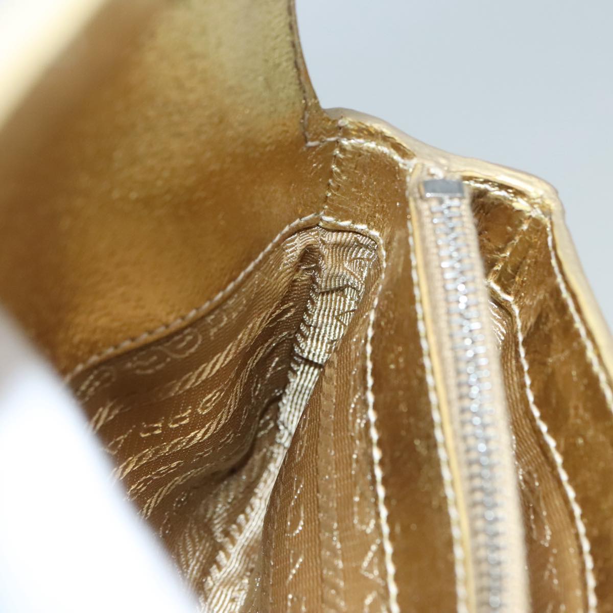 PRADA Accessory Pouch Leather Silver Gold Auth 88214V