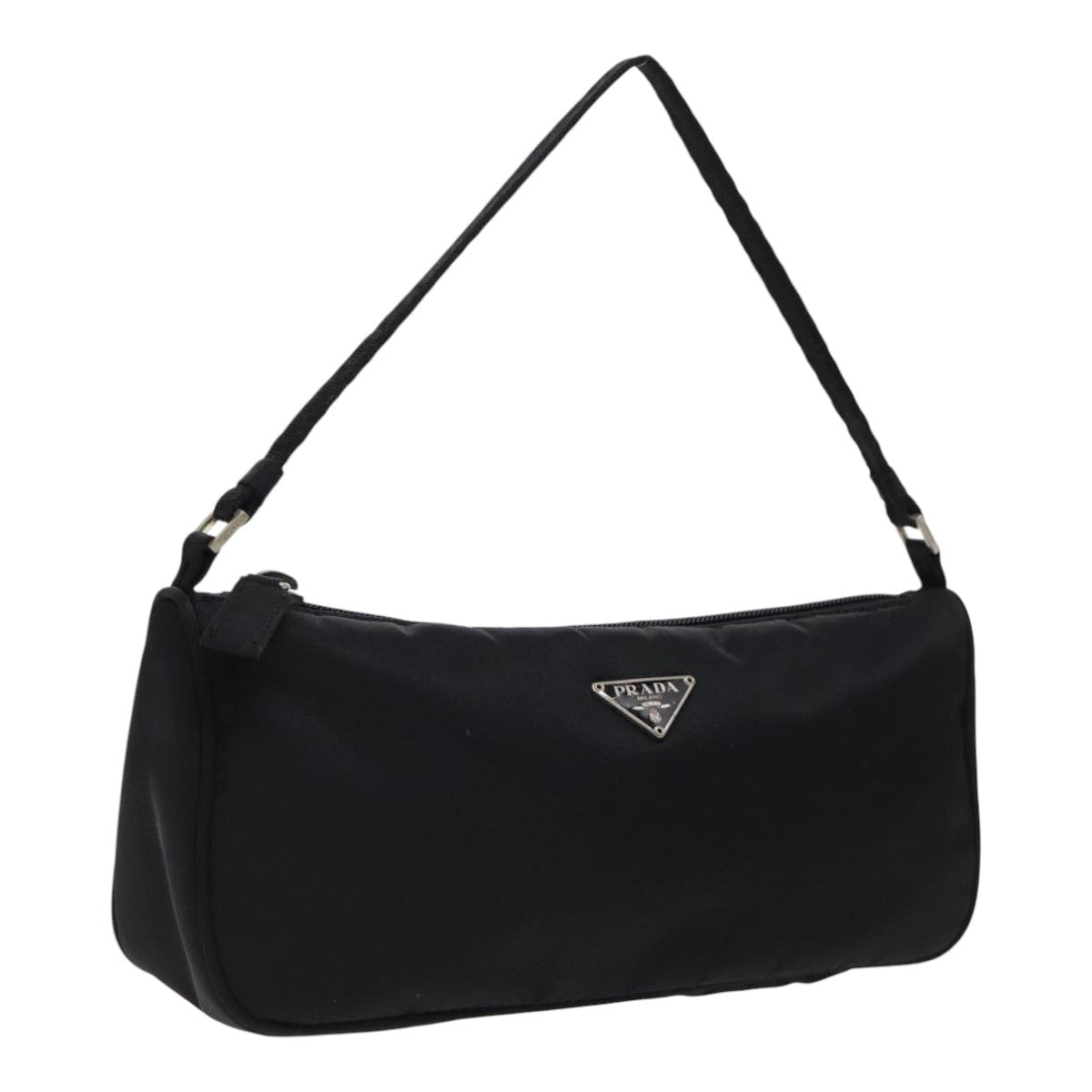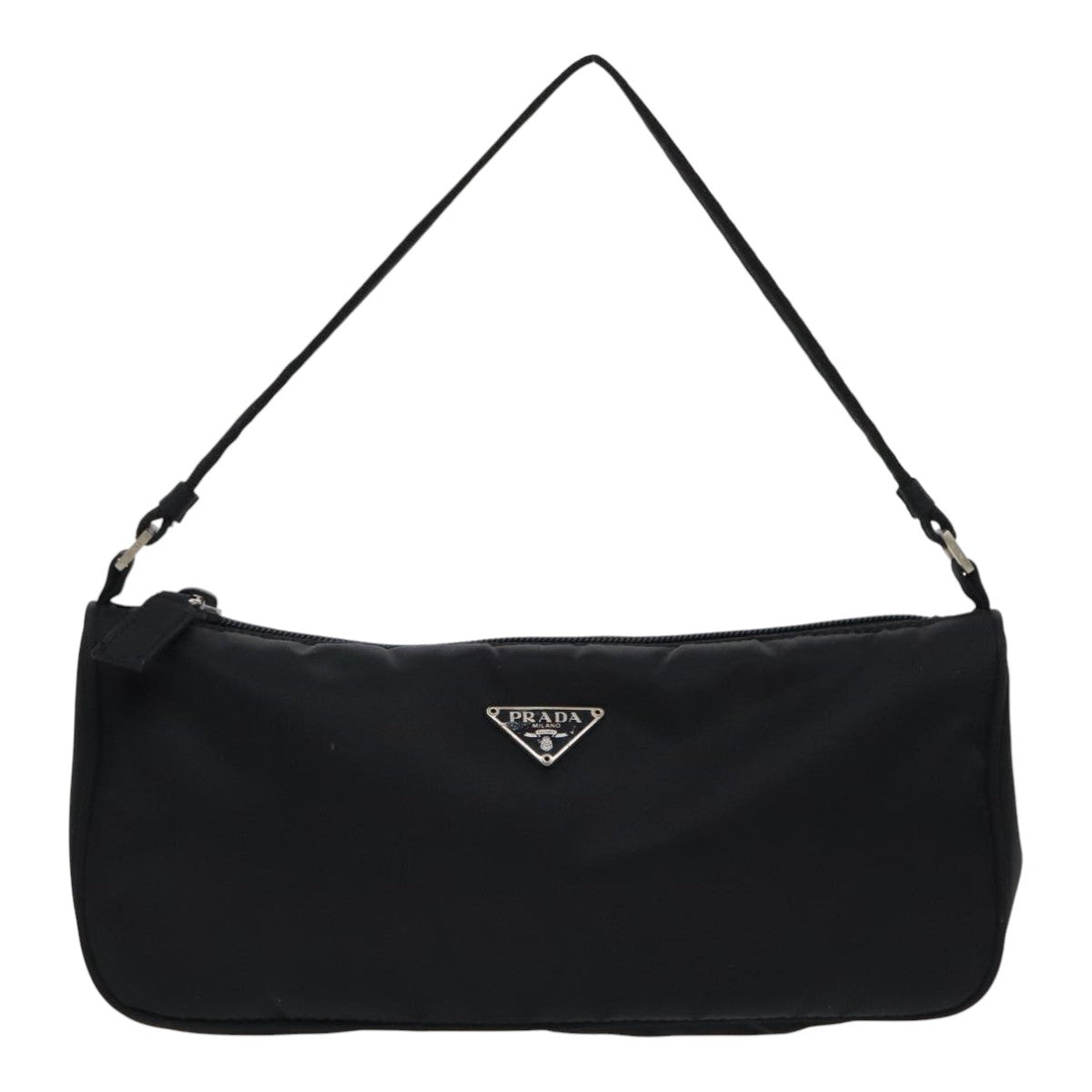 PRADA Accessory Pouch Nylon Black Silver Auth 95690V