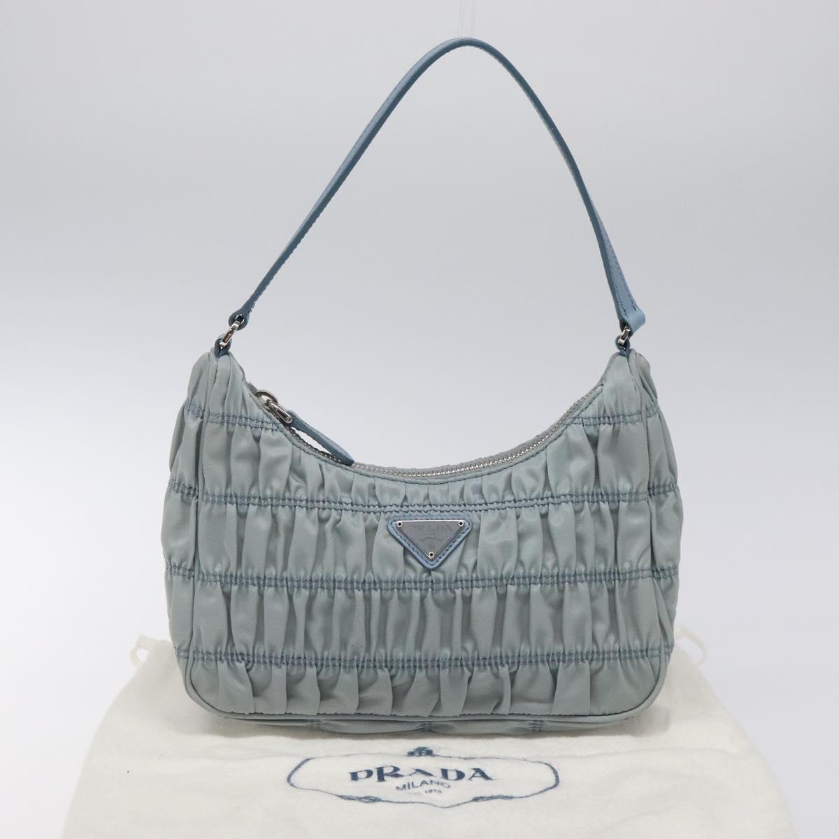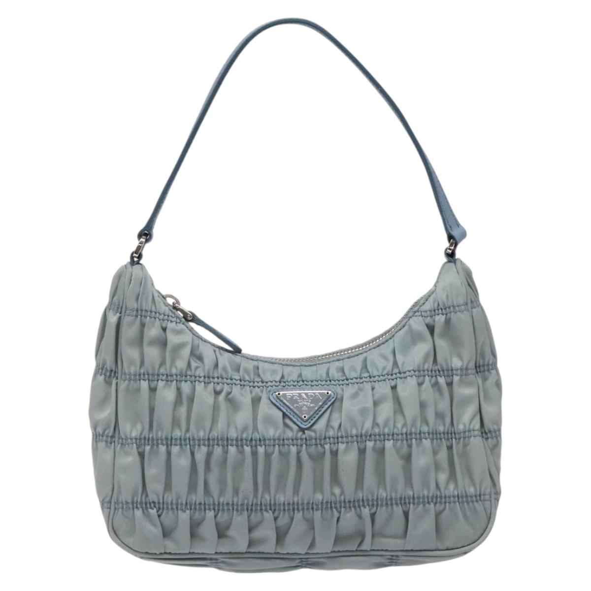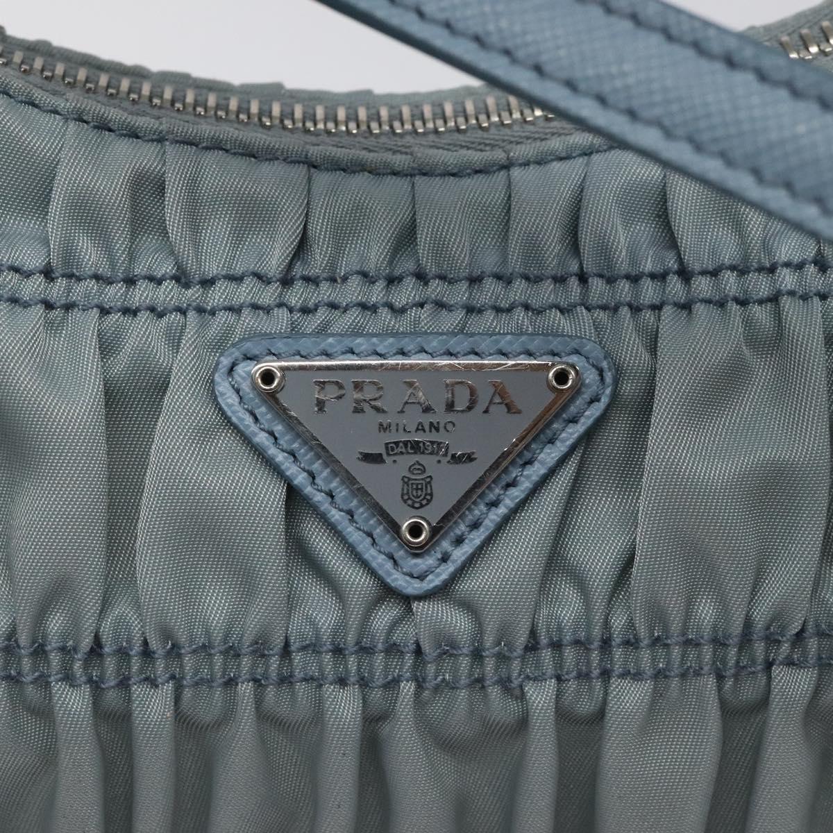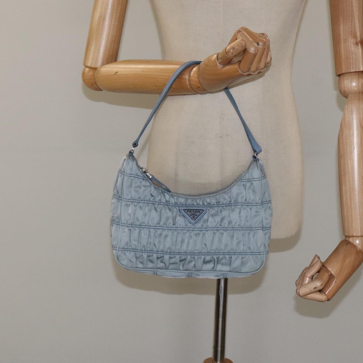 PRADA Accessory Pouch Nylon Light Blue Silver Auth MY485V