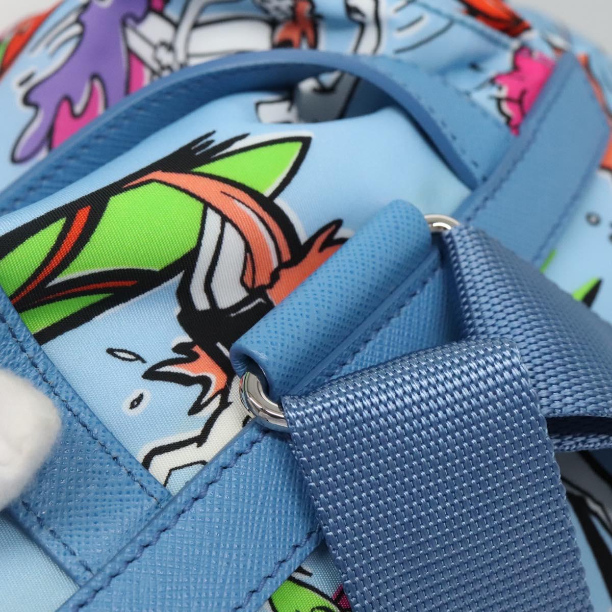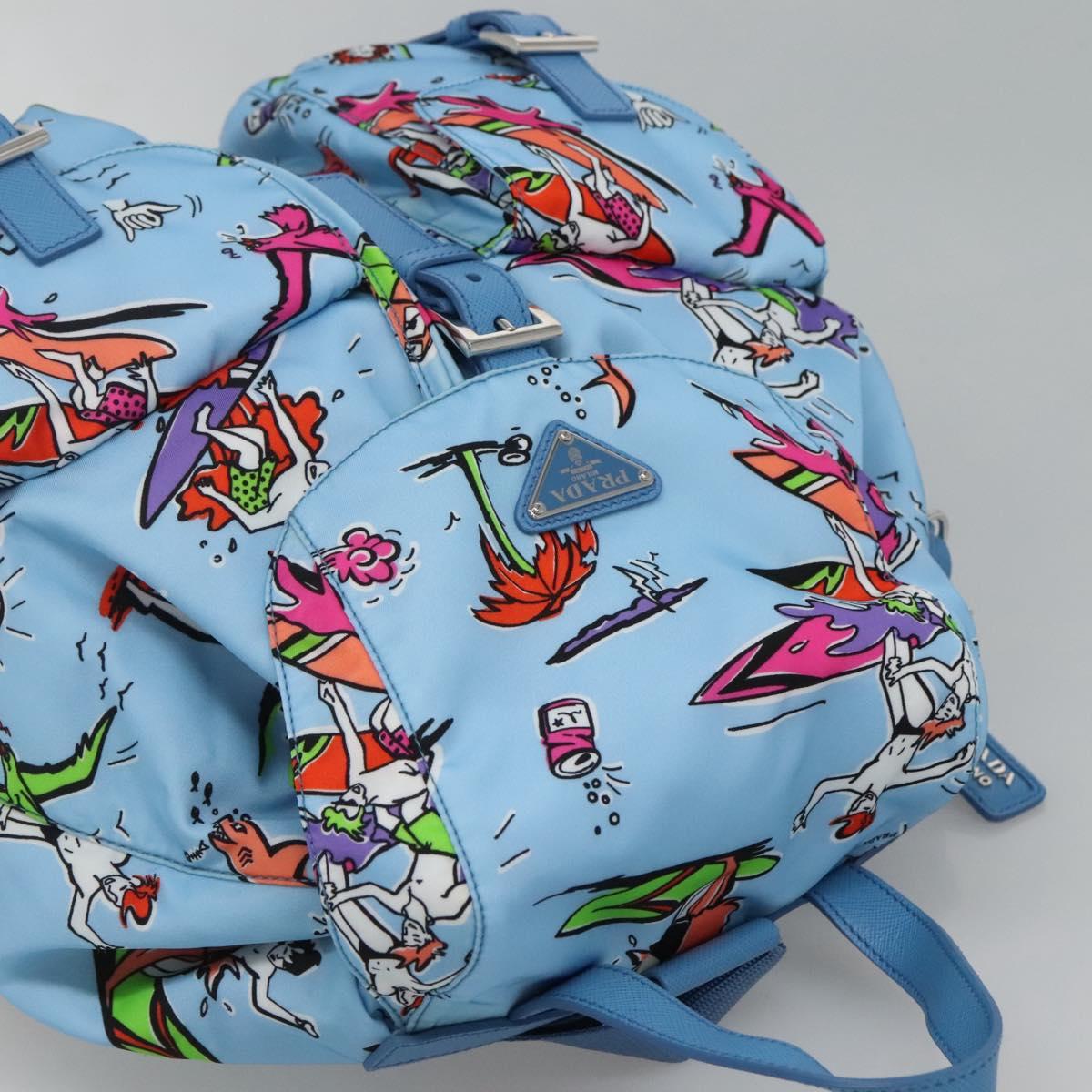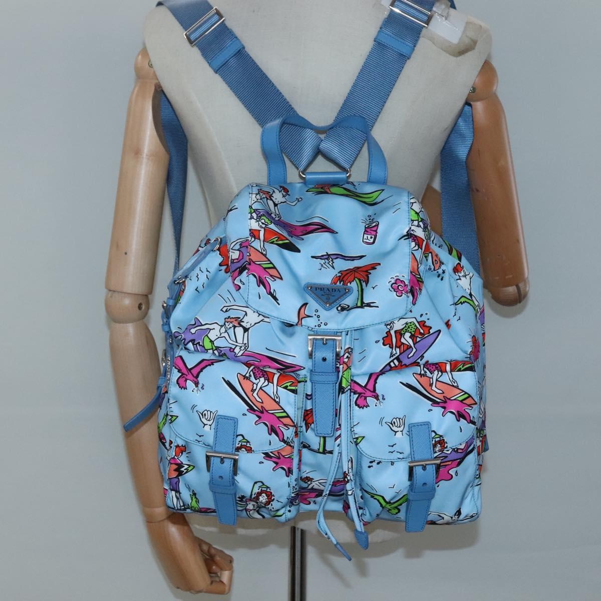 PRADA Backpack Nylon Light Blue Silver Auth 127568V