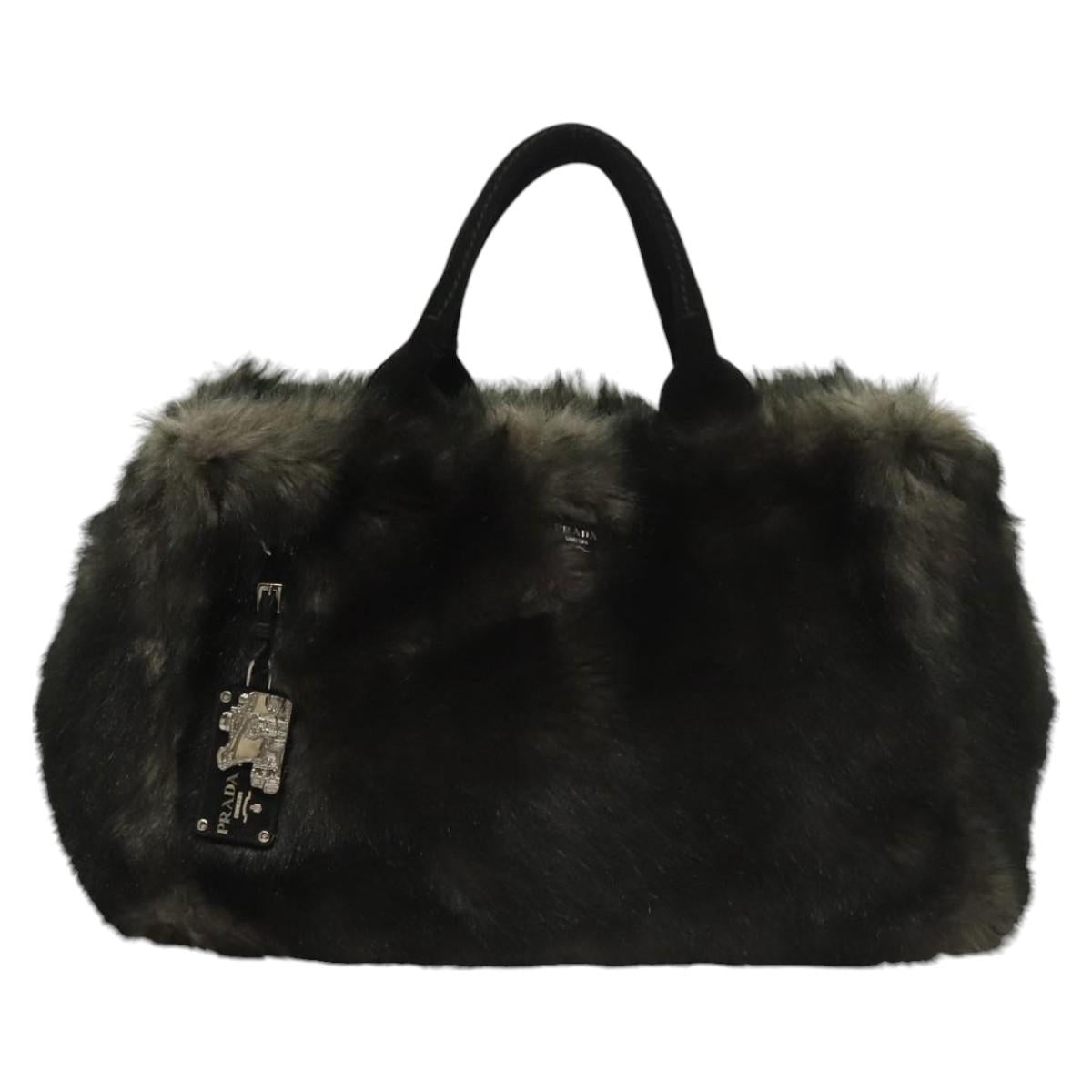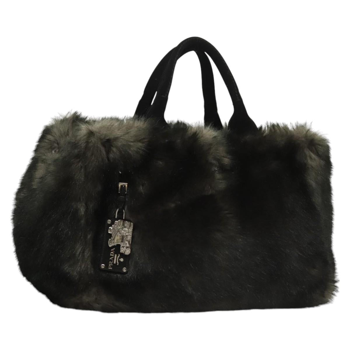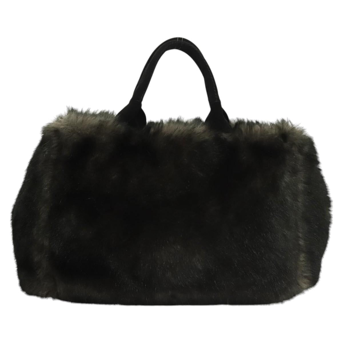 PRADA Canapa GM Hand Bag Black Gray Auth ki5632AV