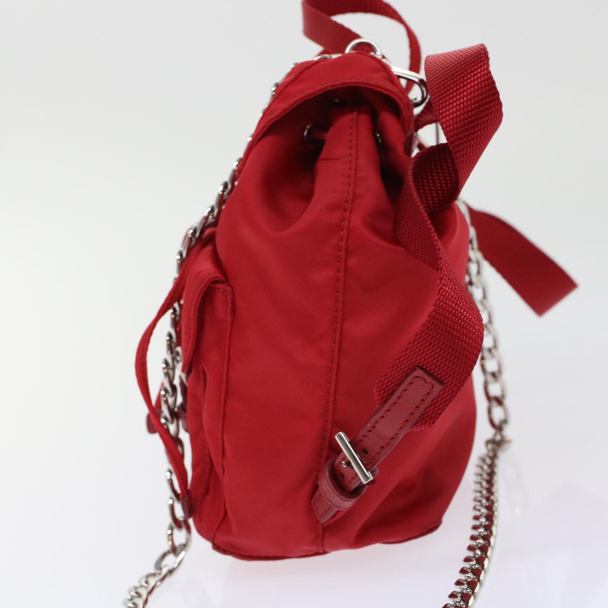 PRADA Chain Backpack Nylon Red 1BH029 Auth am4819V