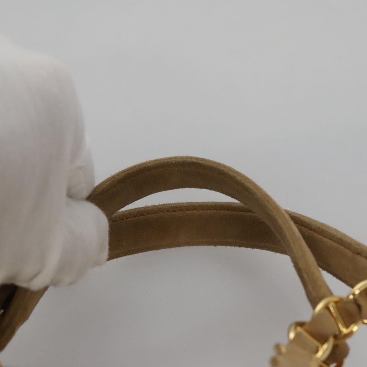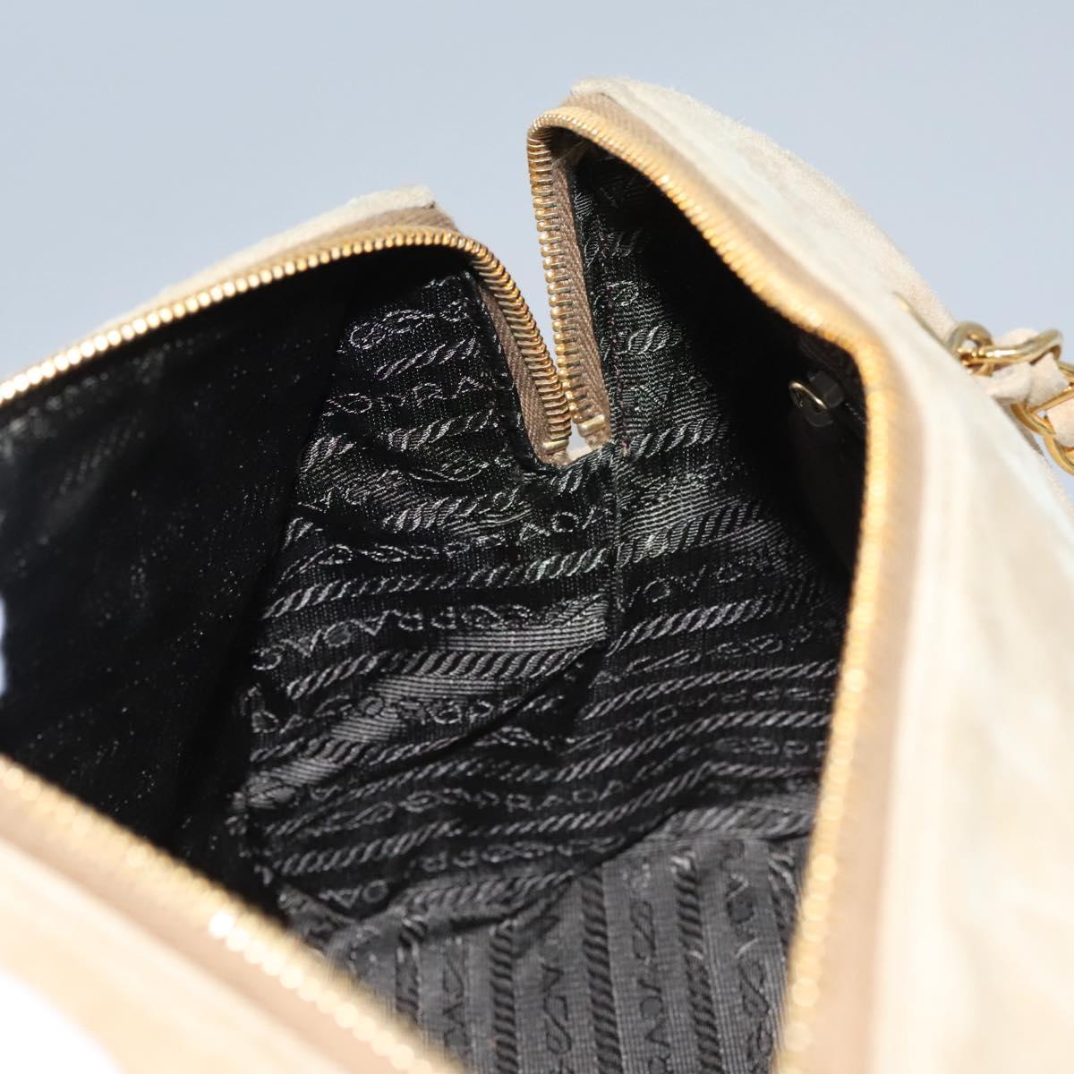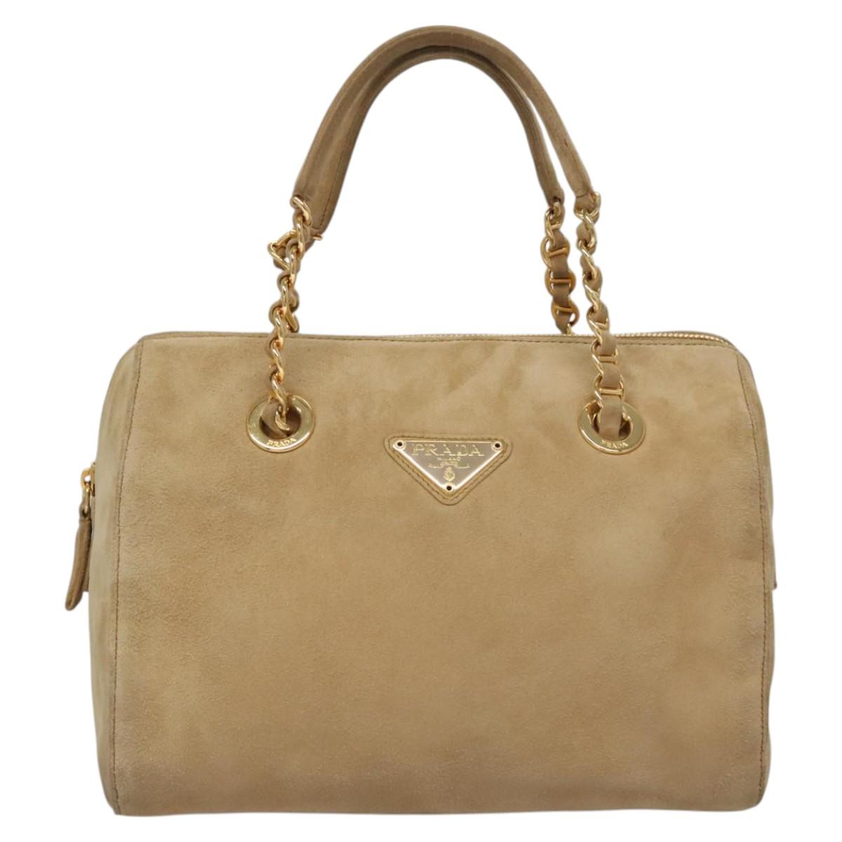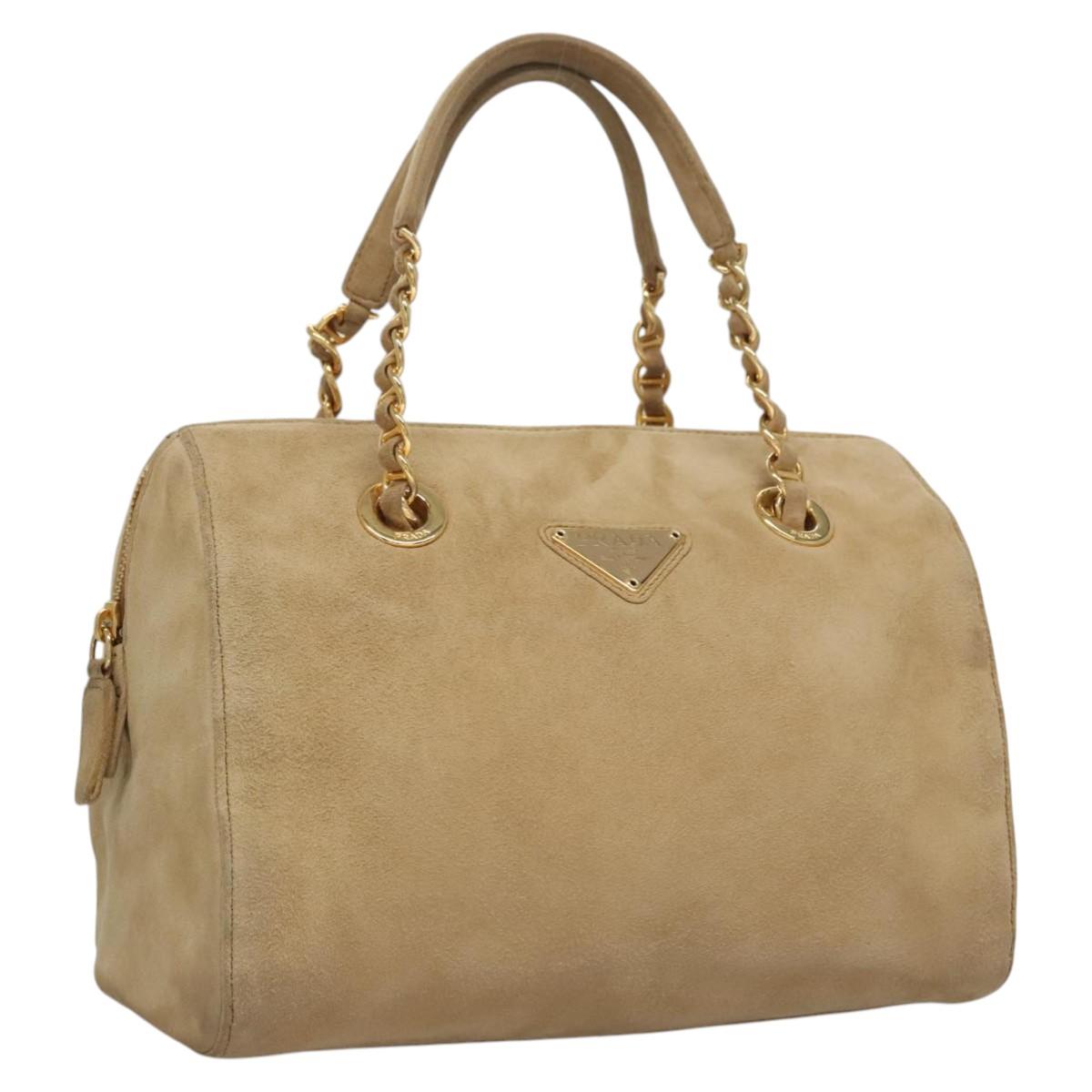 PRADA Chain Hand Bag Suede Beige Gold Auth 109818V