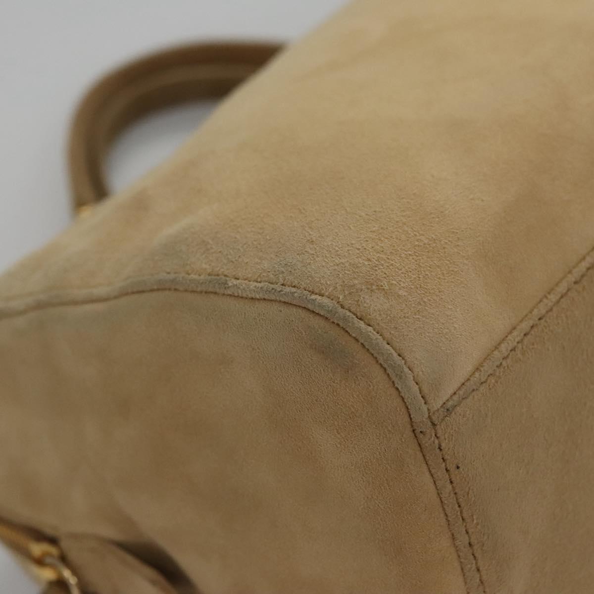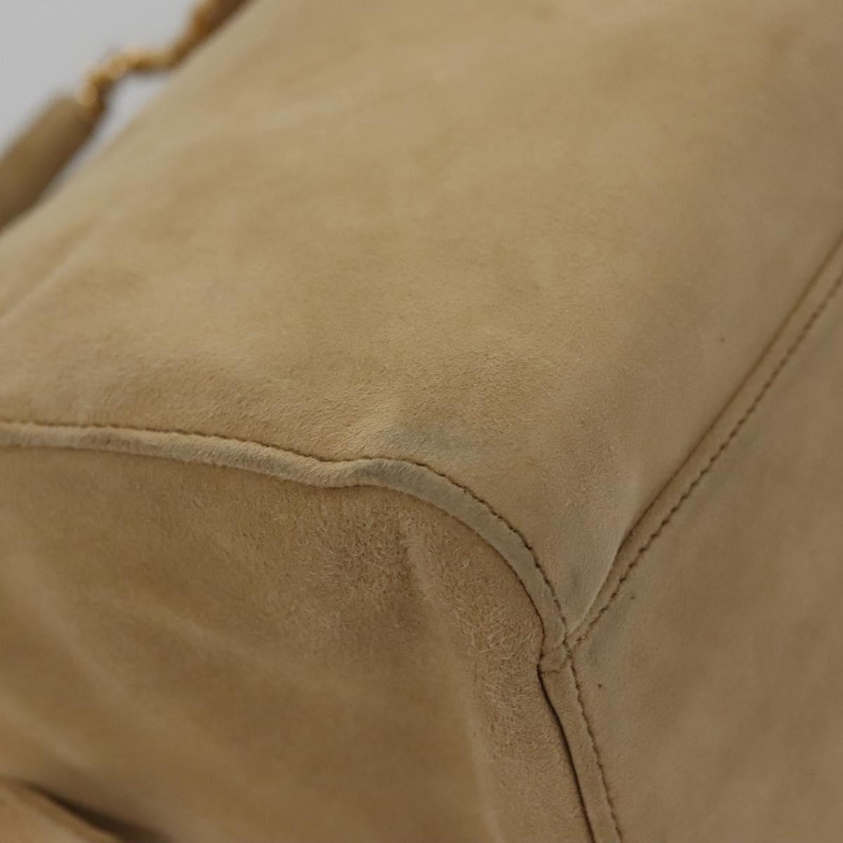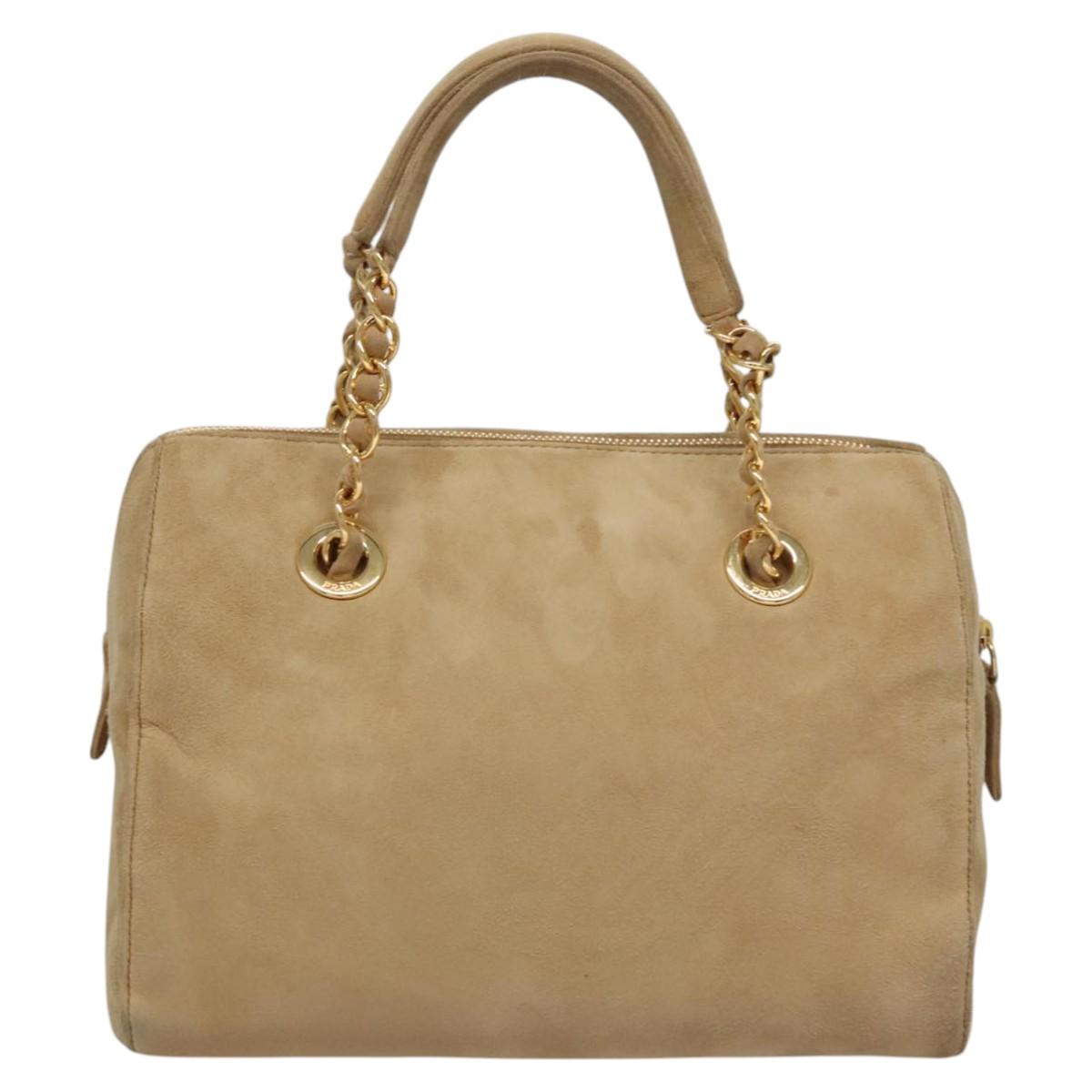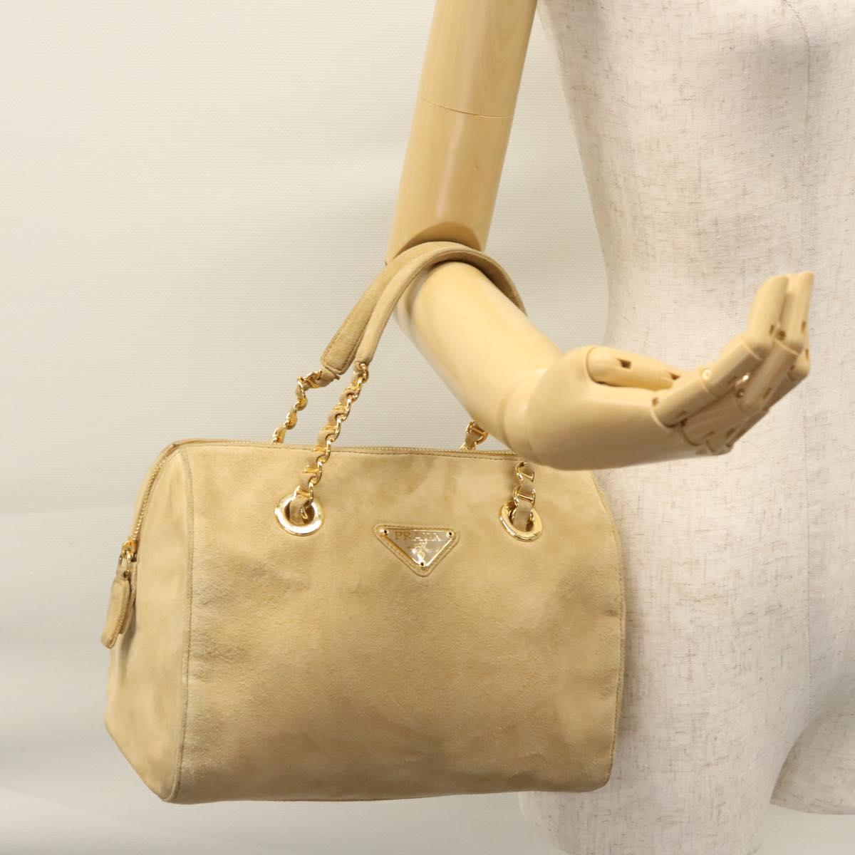 PRADA Chain Hand Bag Suede Beige Gold Auth 109818V