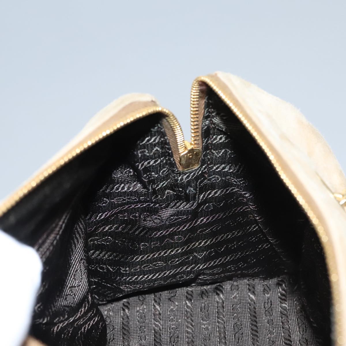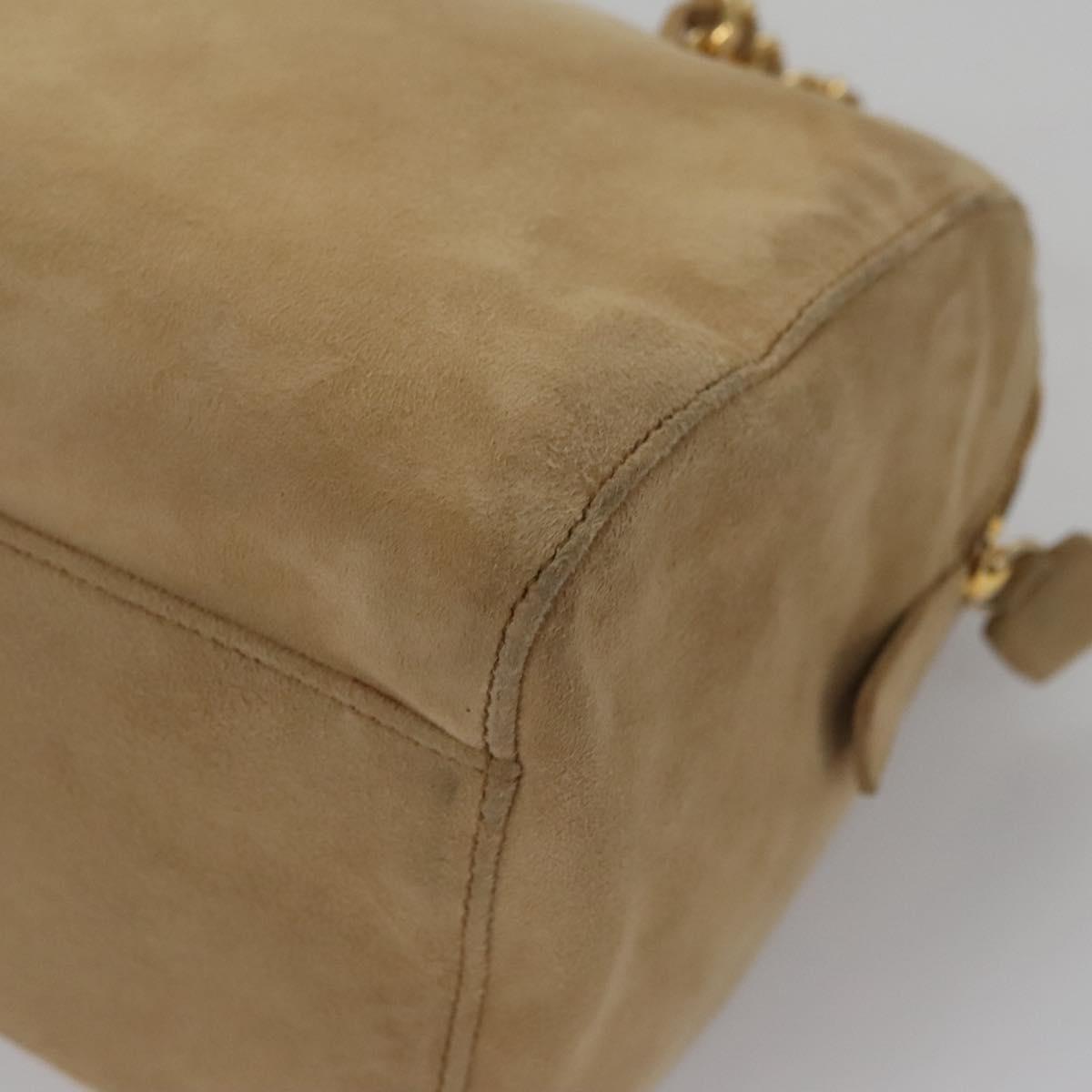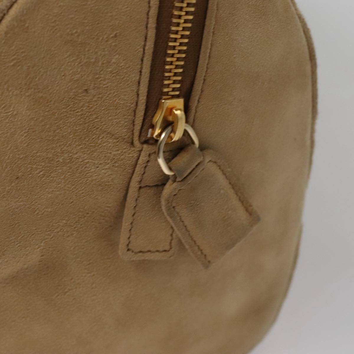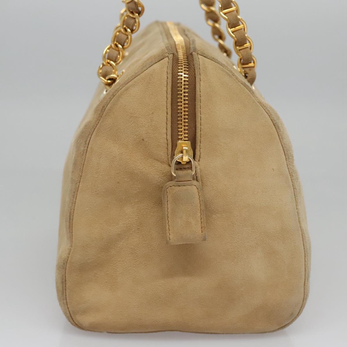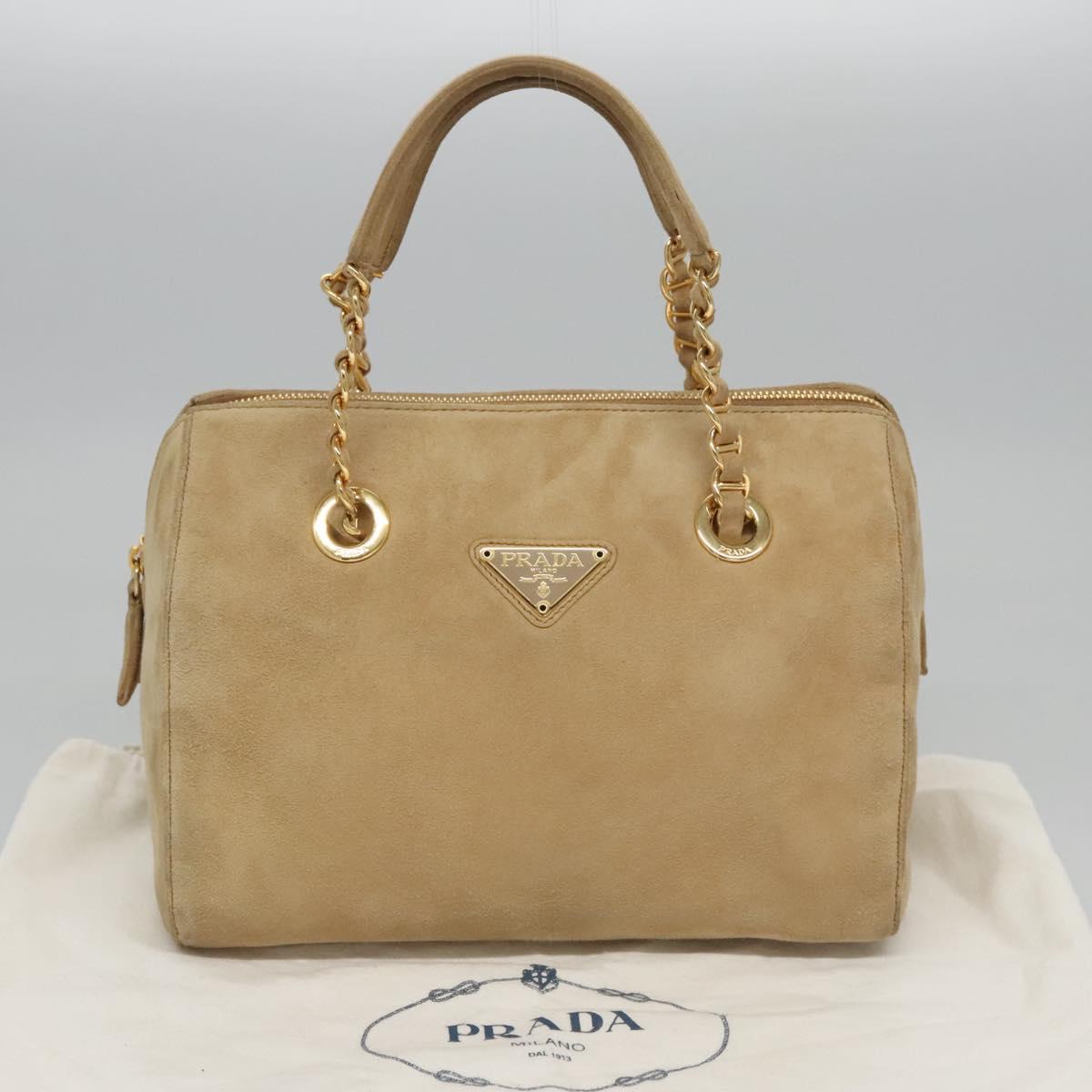 PRADA Chain Hand Bag Suede Beige Gold Auth 109818V