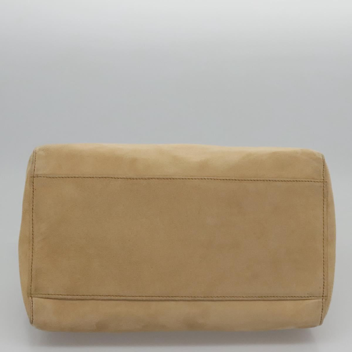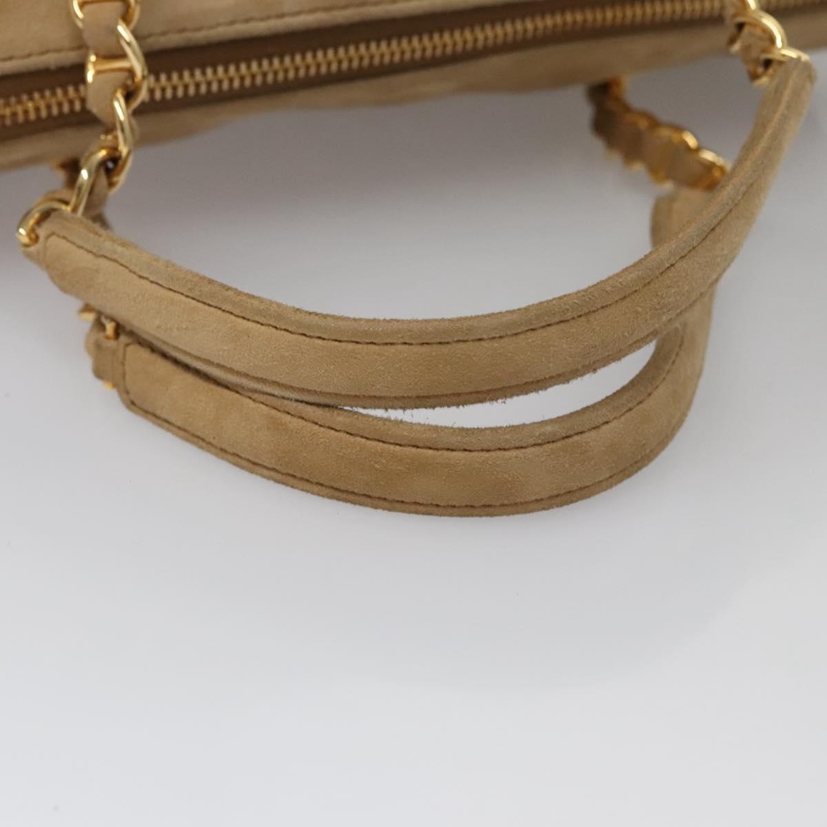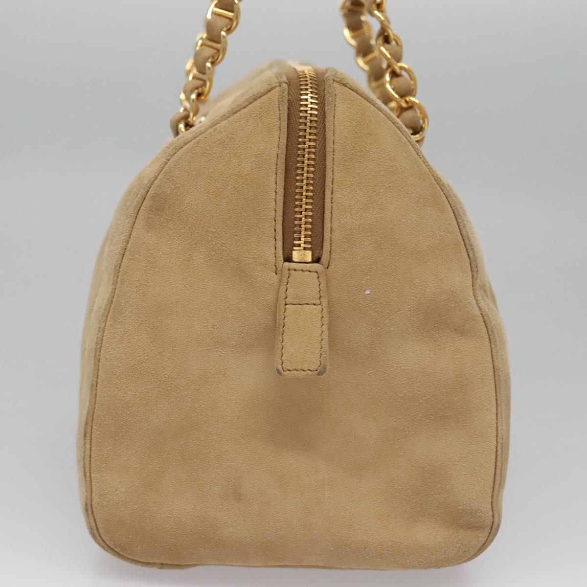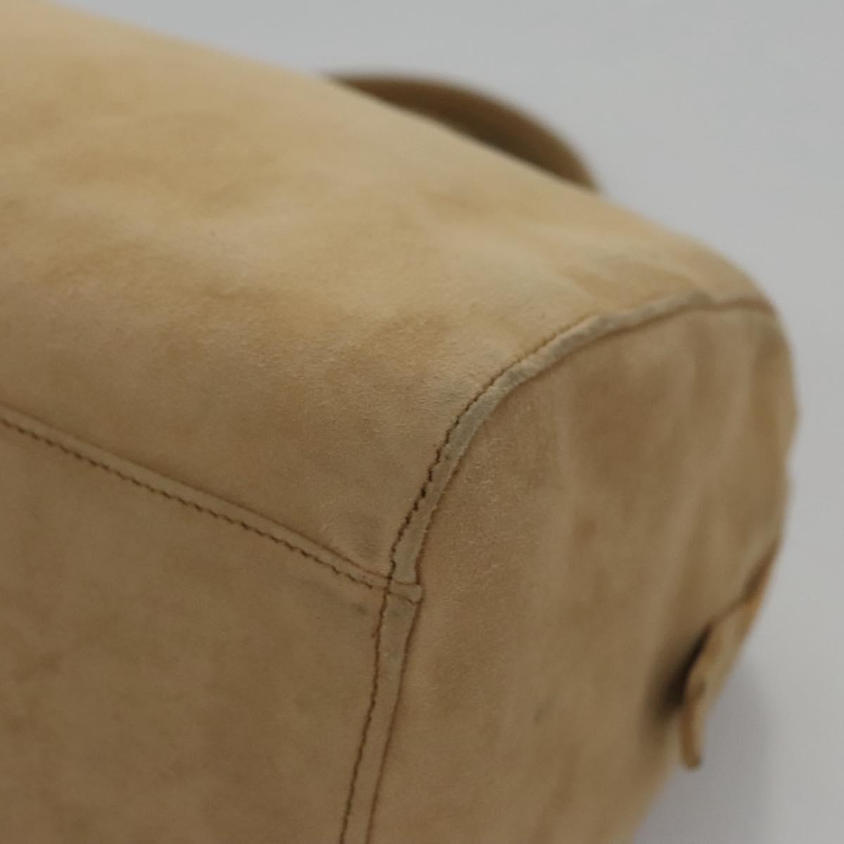 PRADA Chain Hand Bag Suede Beige Gold Auth 109818V