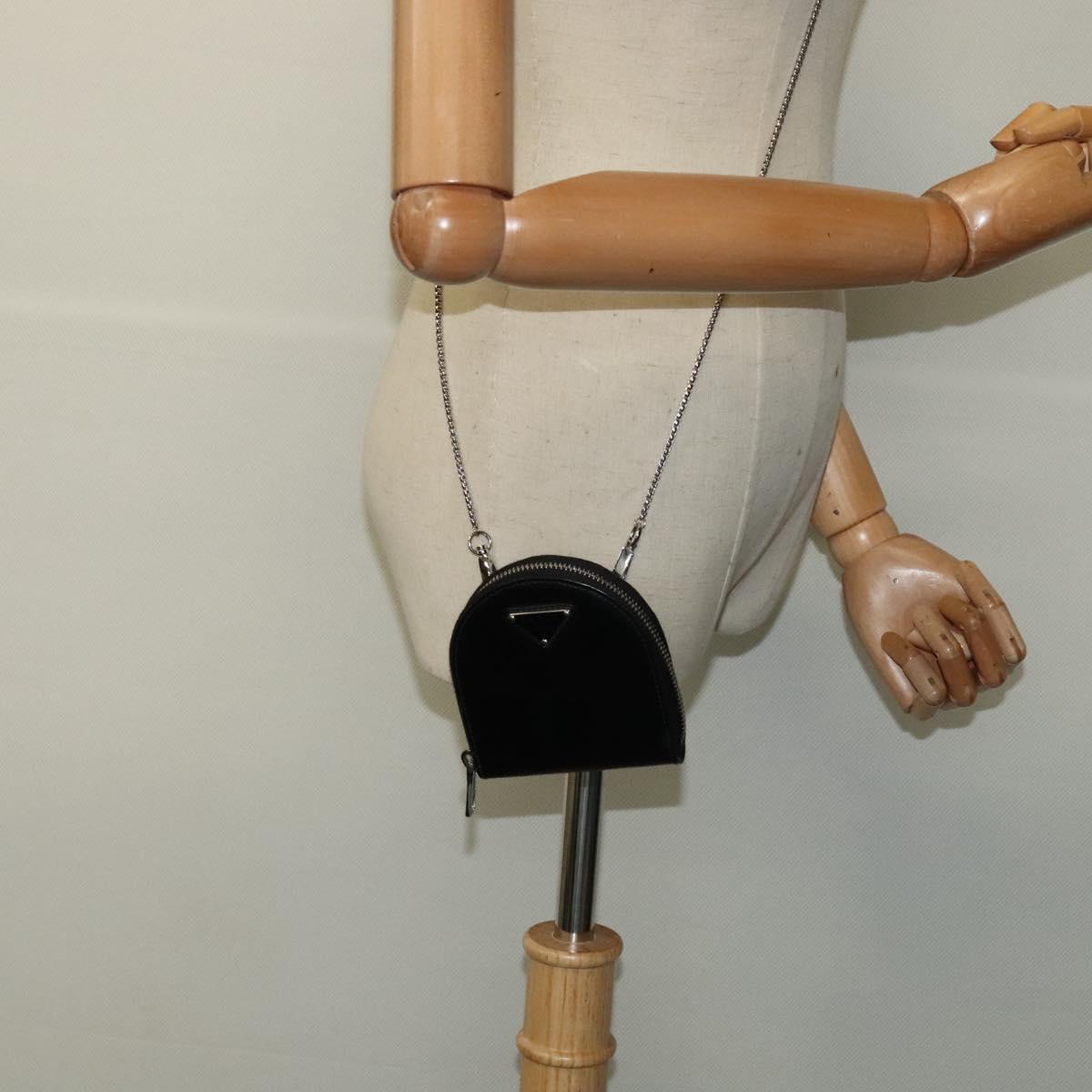 PRADA Chain Shoulder Bag Leather Black Auth EC795V