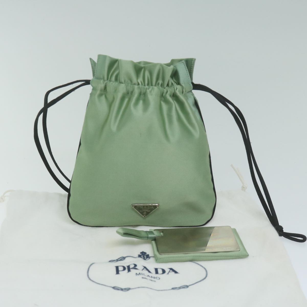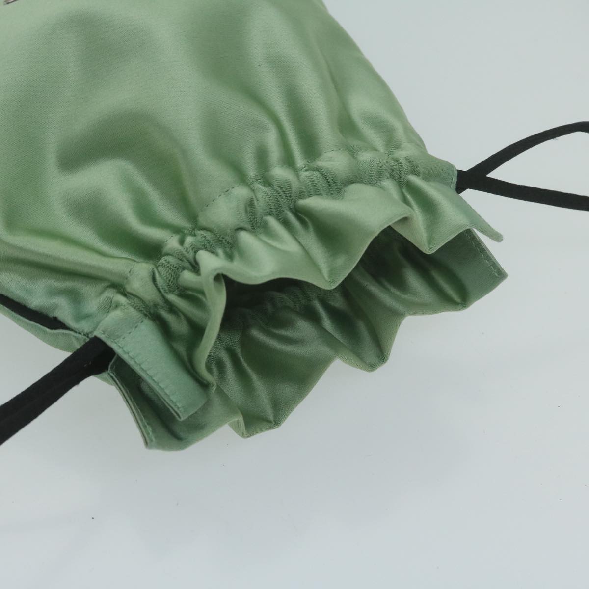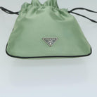 PRADA Drawstring Pouch Pouch Satin Green Auth 65661V