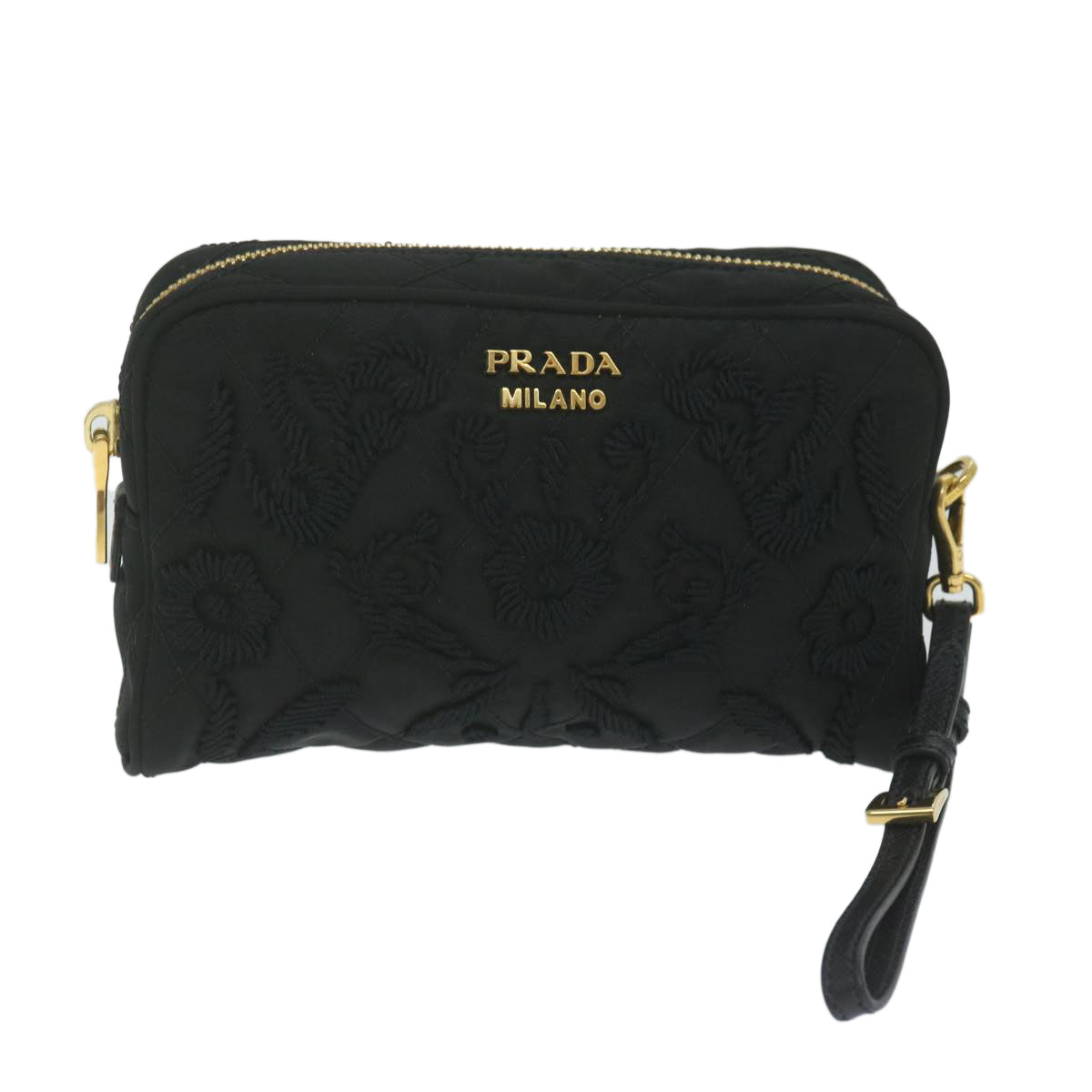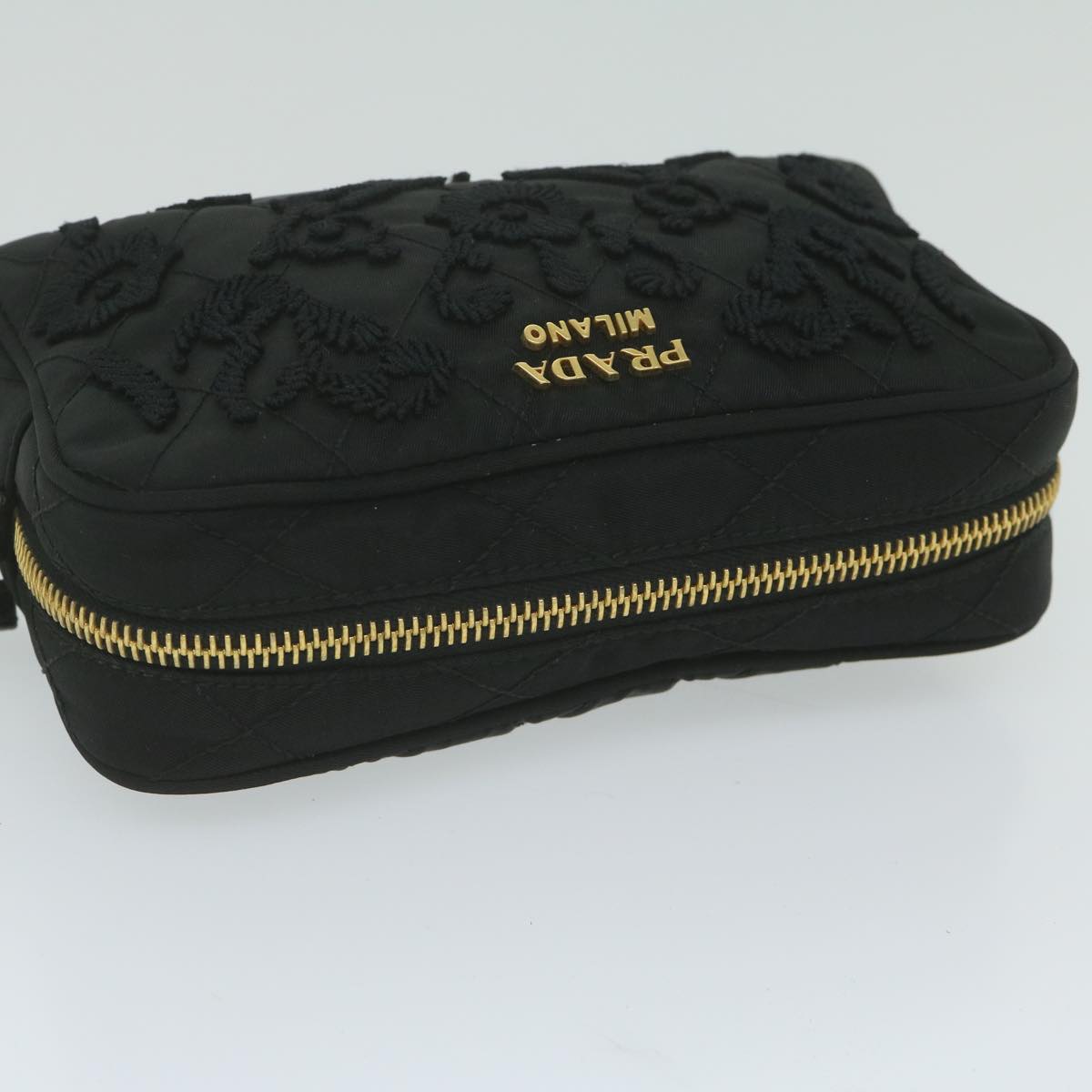 PRADA Embroidery Pouch Nylon Black Auth ac2598V