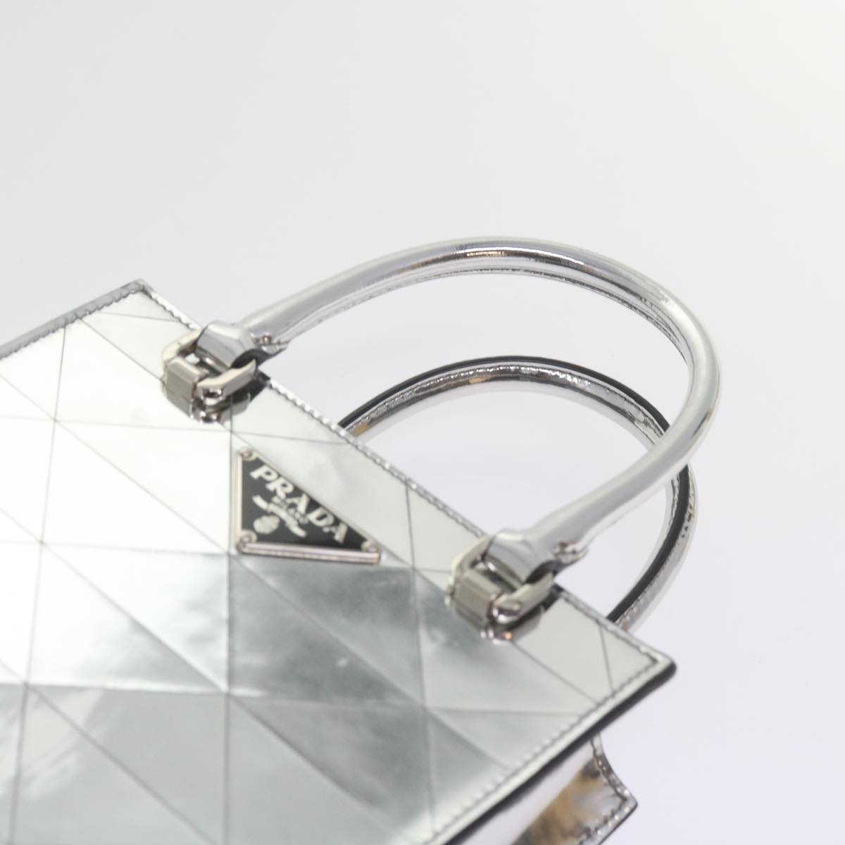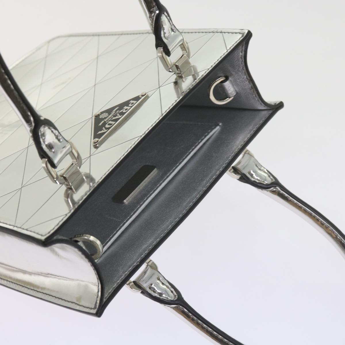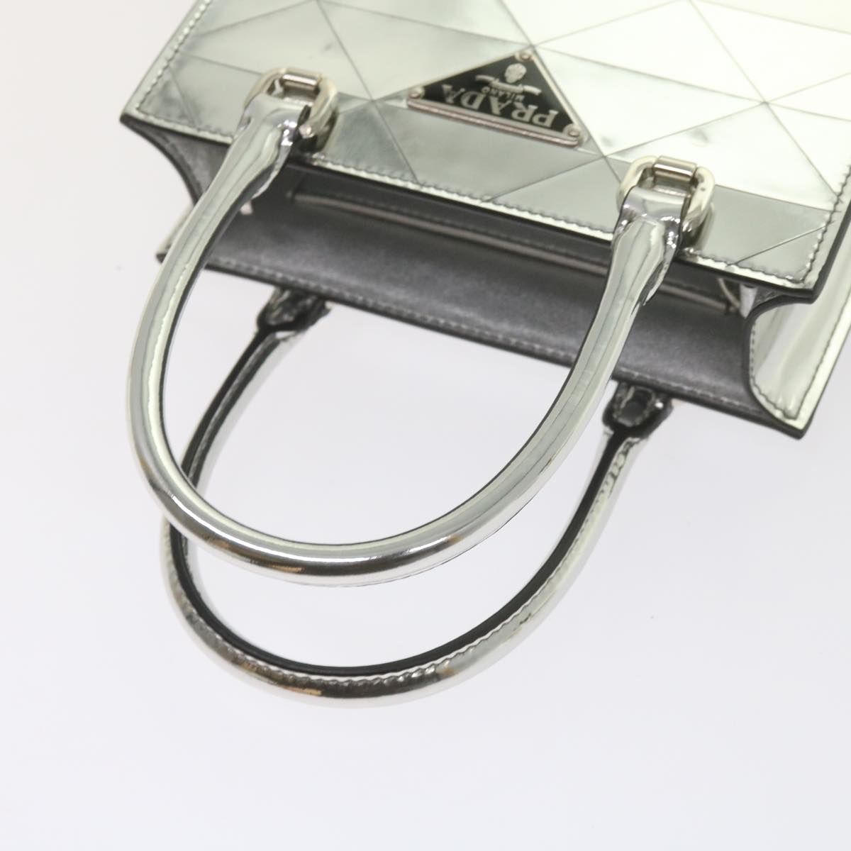 PRADA Hand Bag Metallic leather Silver Auth 59813SV