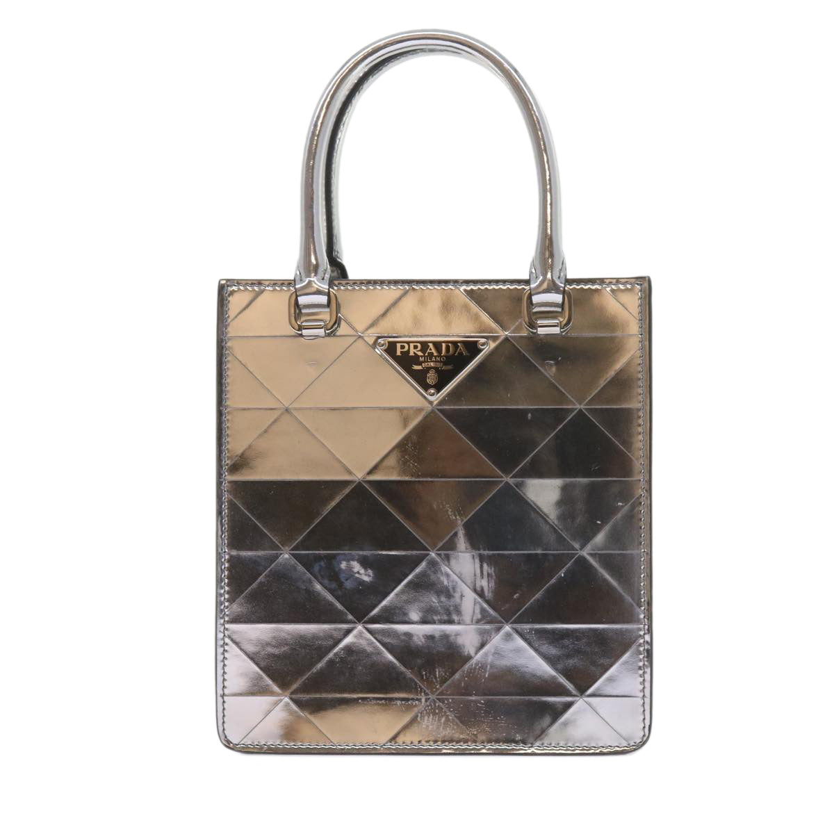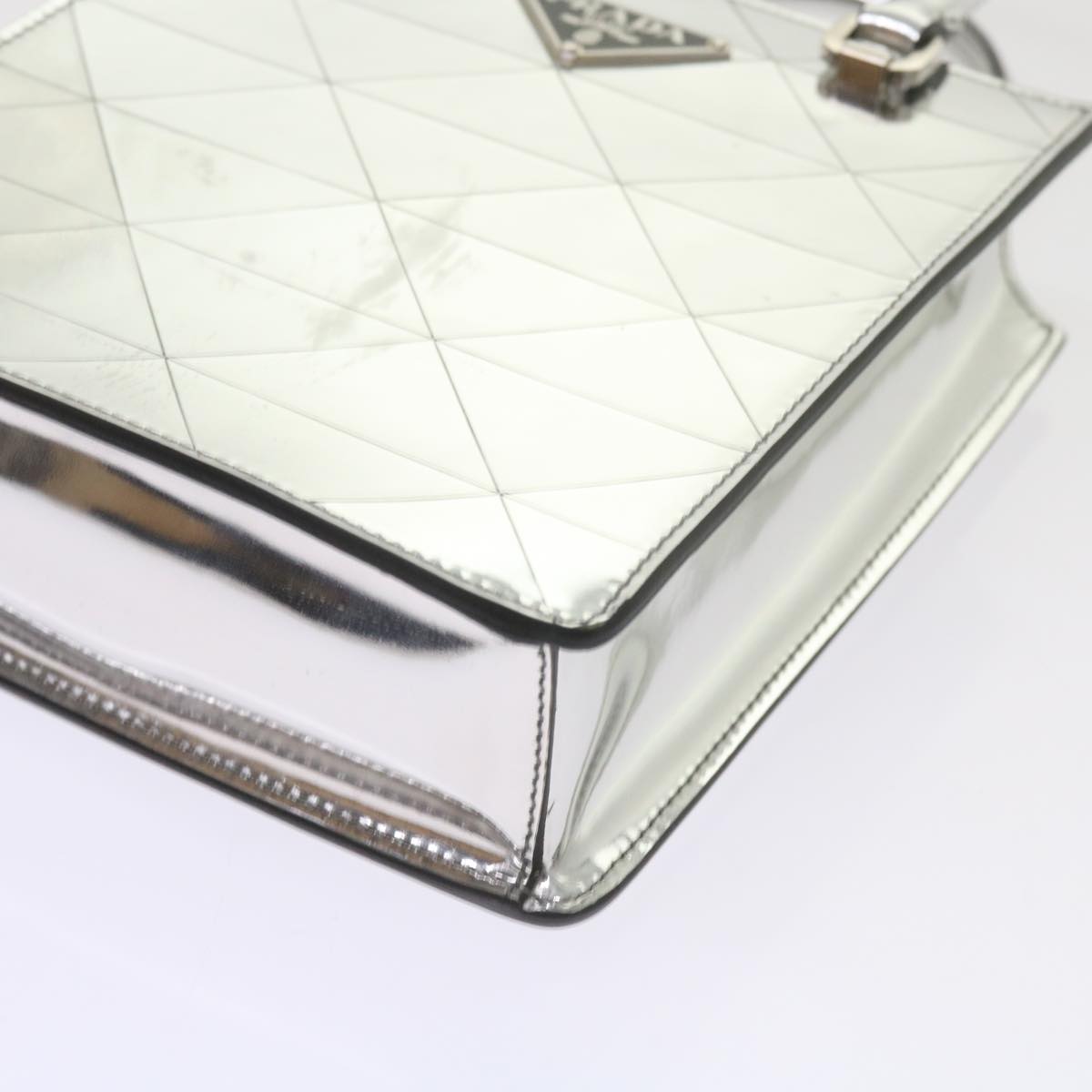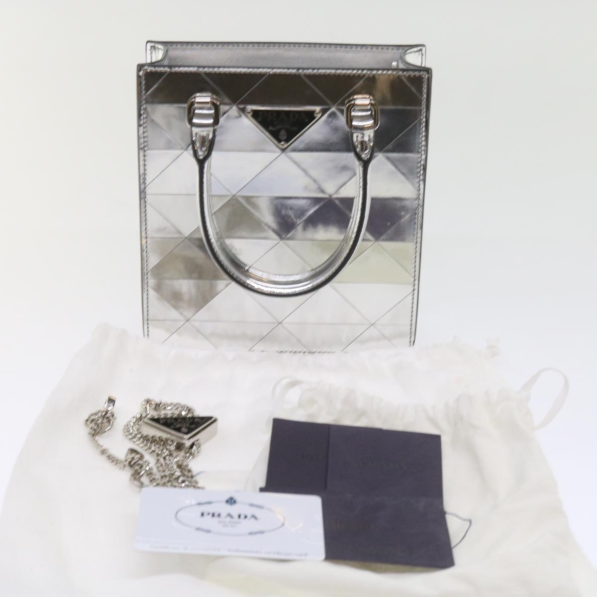 PRADA Hand Bag Metallic leather Silver Auth 59813SV