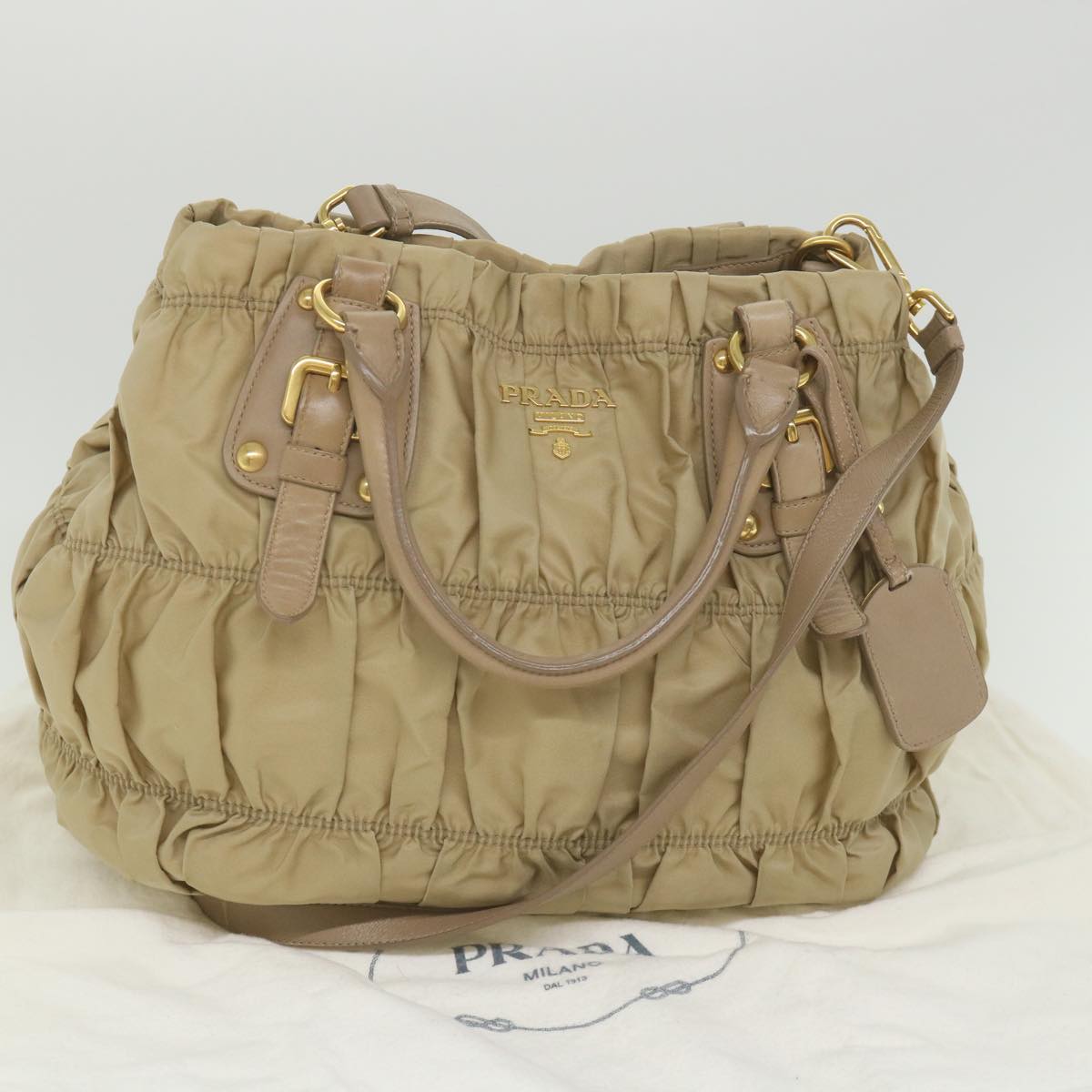 PRADA Hand Bag Nylon 2way Beige Auth ki3730V