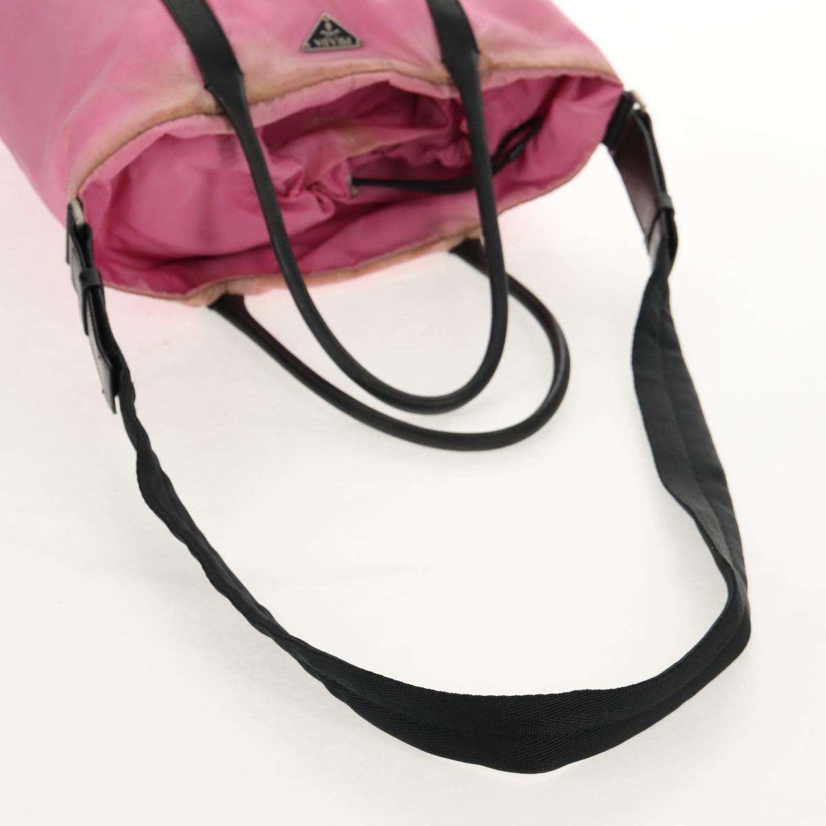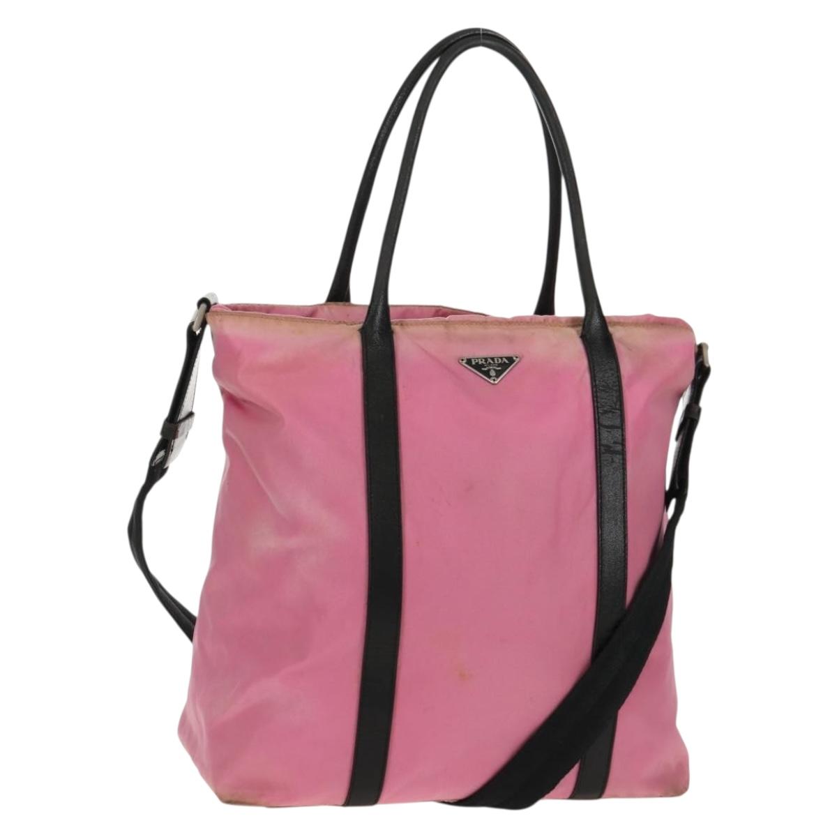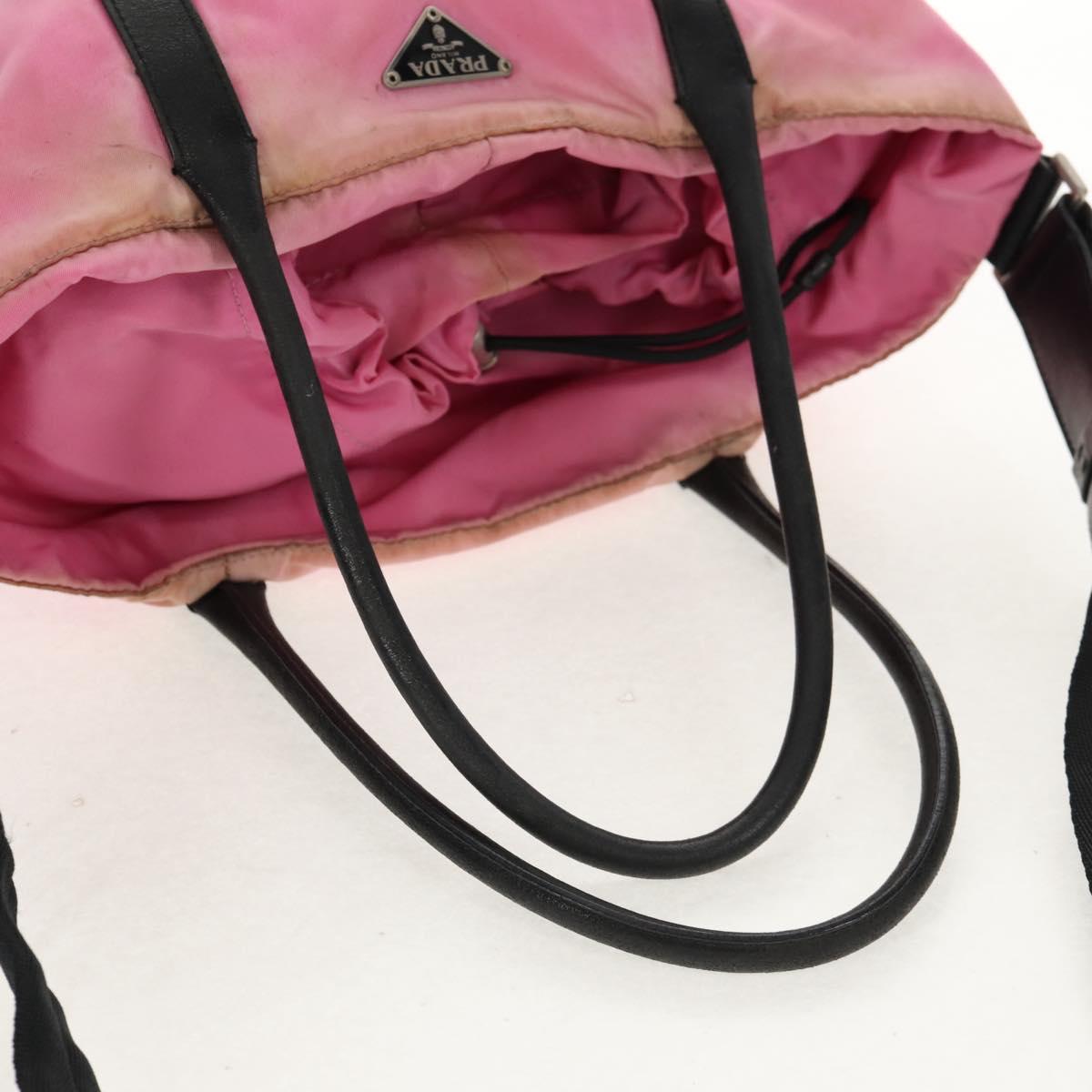 PRADA Hand Bag Nylon Leather 2way Pink Black Auth 157377