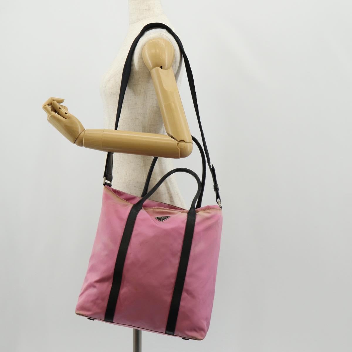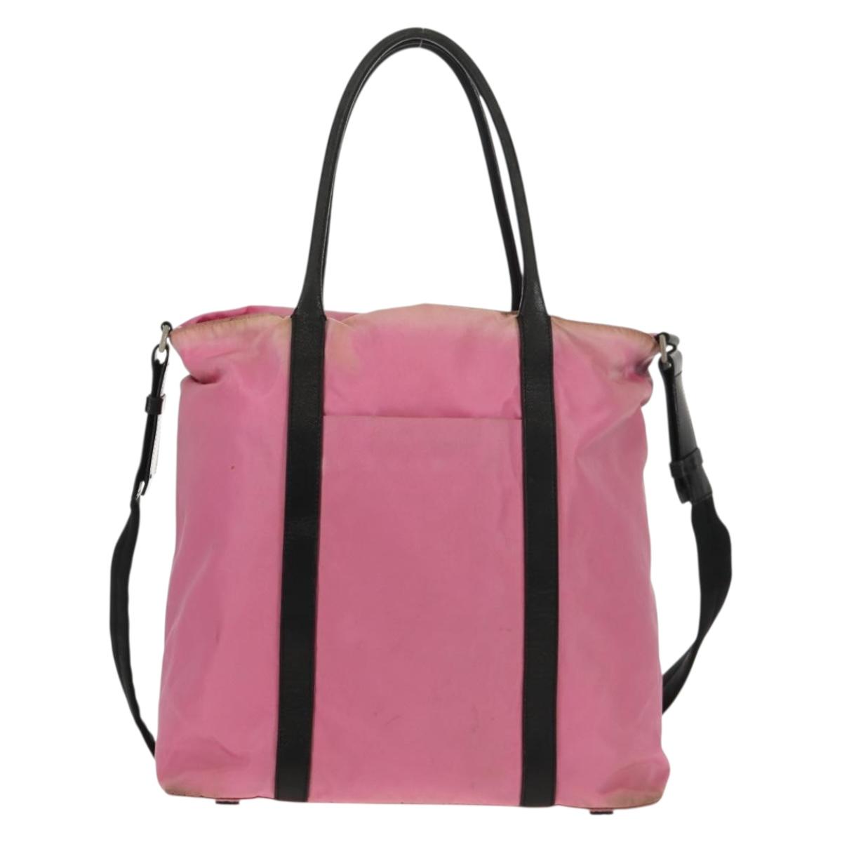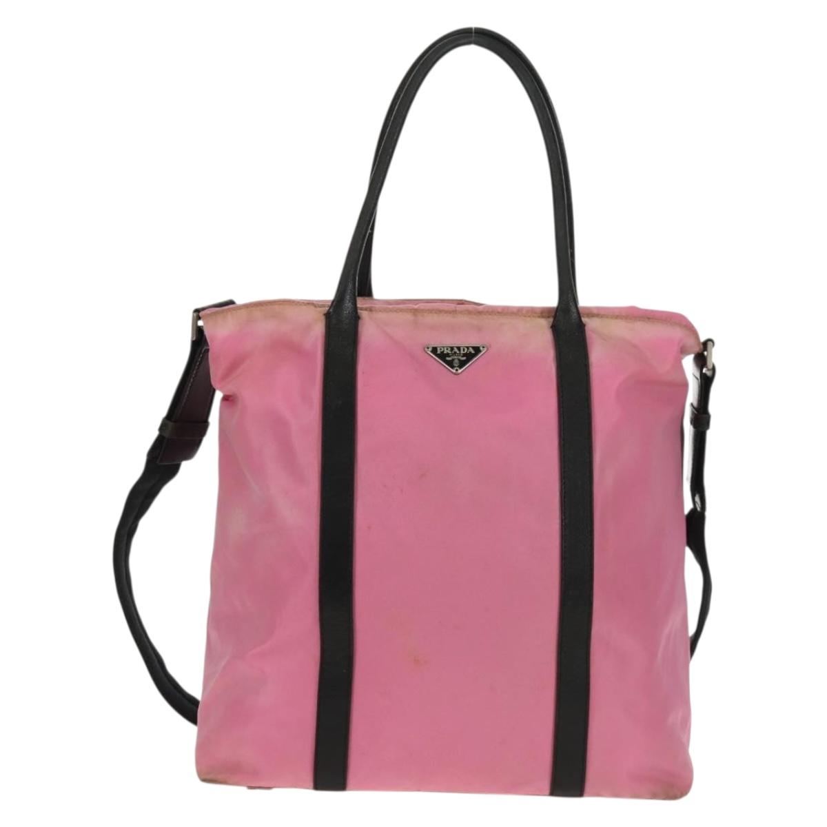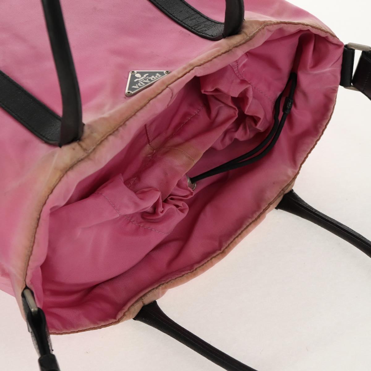 PRADA Hand Bag Nylon Leather 2way Pink Black Auth 157377