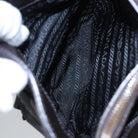 PRADA Hand Bag Nylon Leather Black Gold Auth EC817V