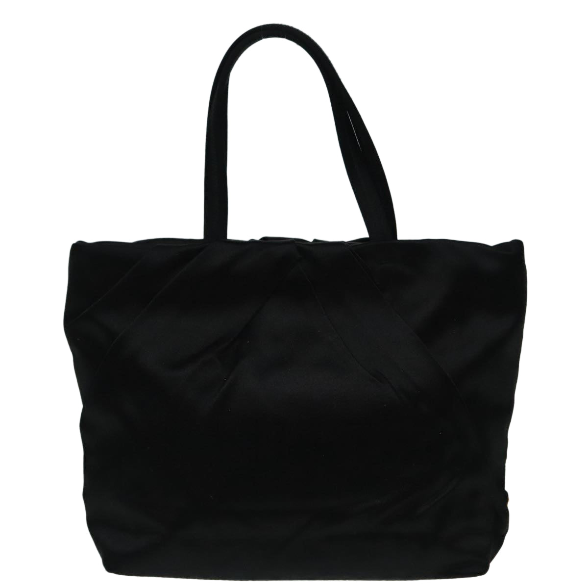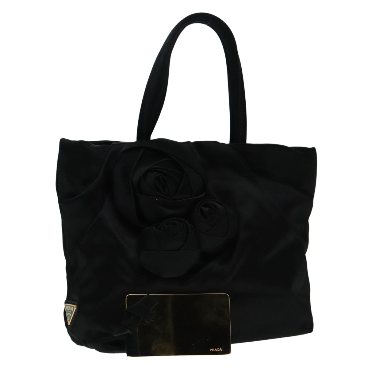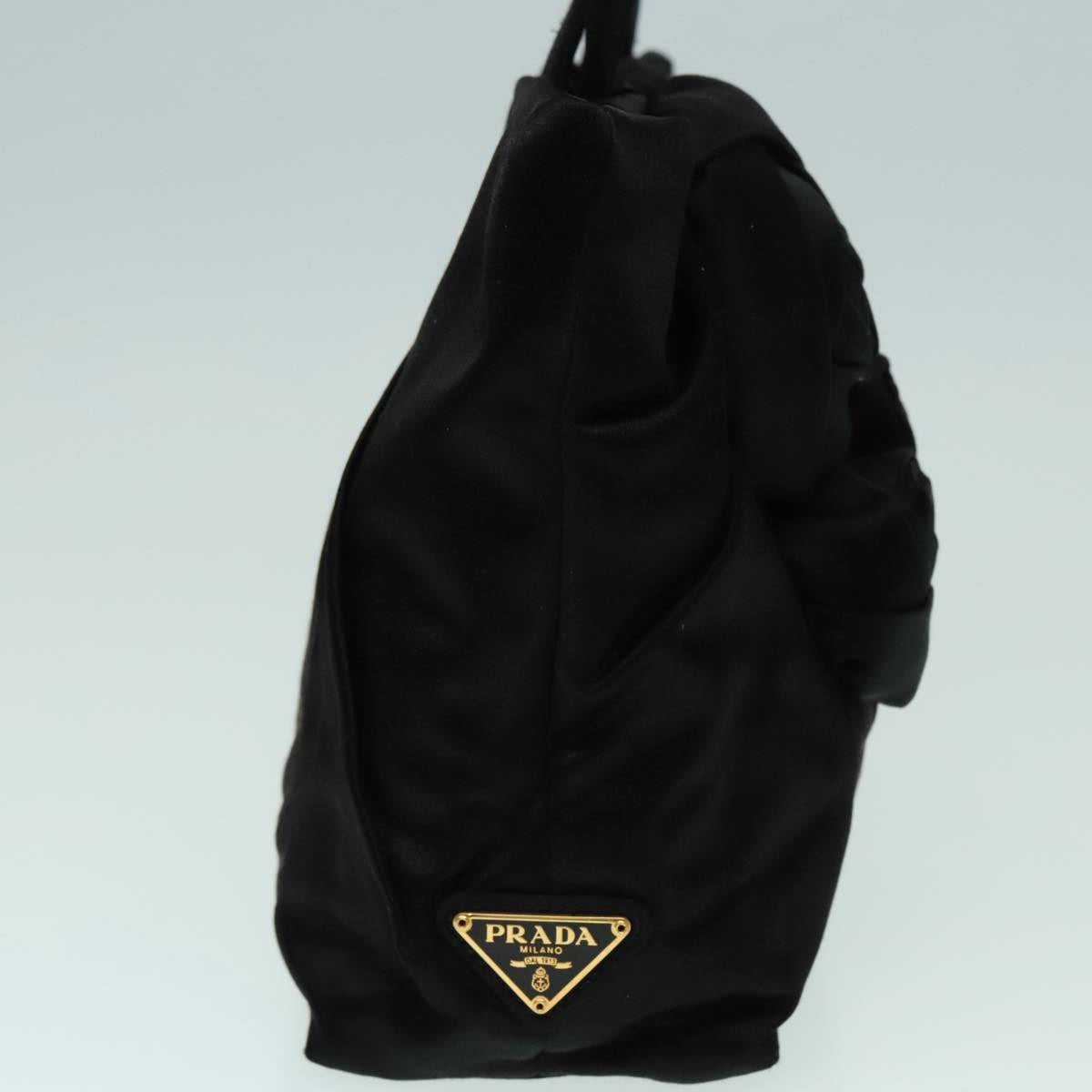 PRADA Hand Bag Satin Black Gold Auth 93461V