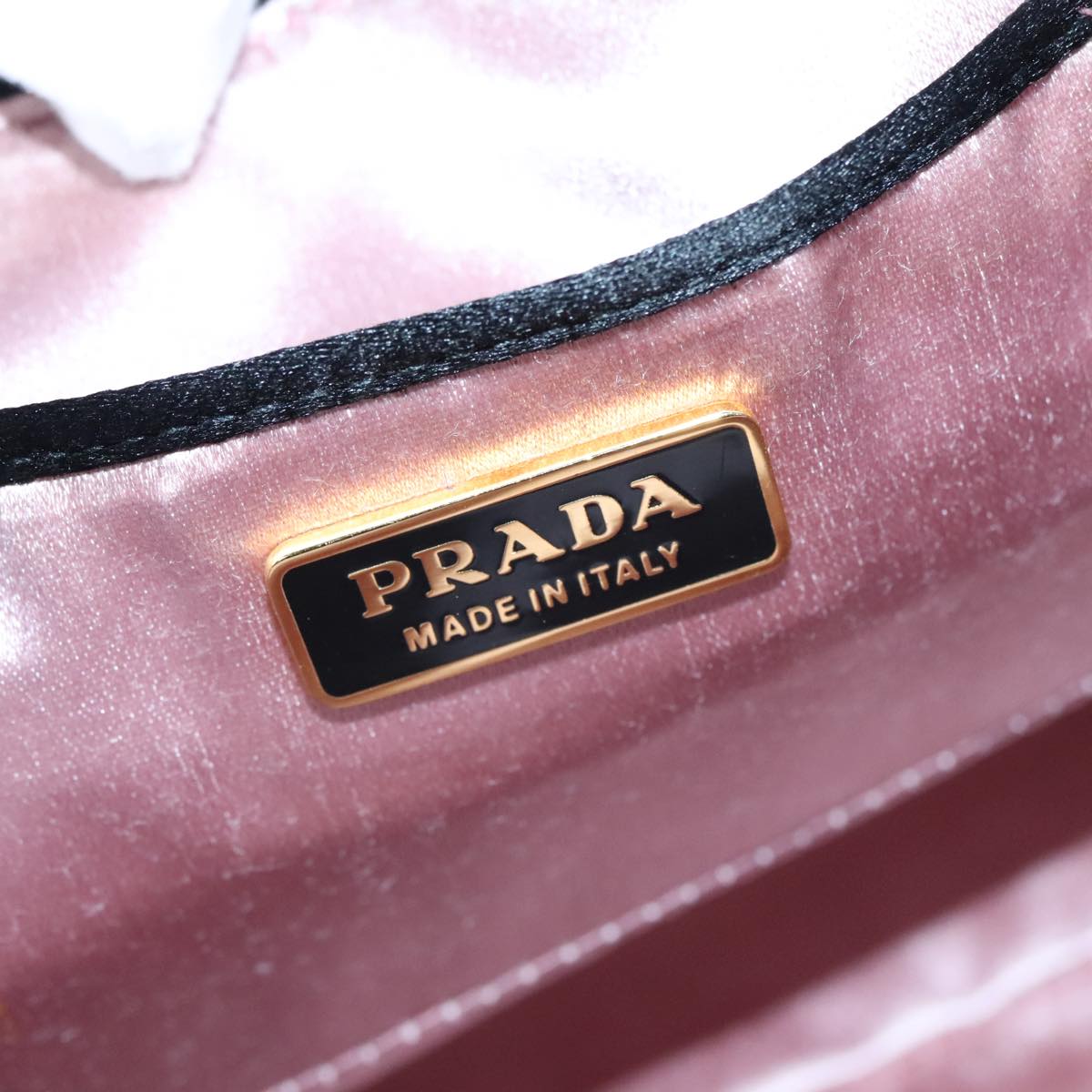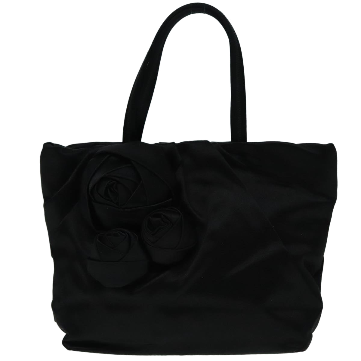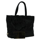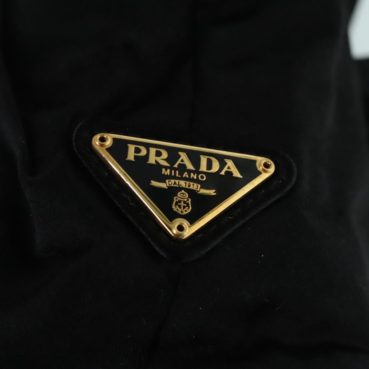PRADA Hand Bag Satin Black Gold Auth 93461V