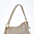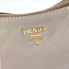 PRADA Logo Shoulder Bag BR4690 Greige Gold Leather Auth