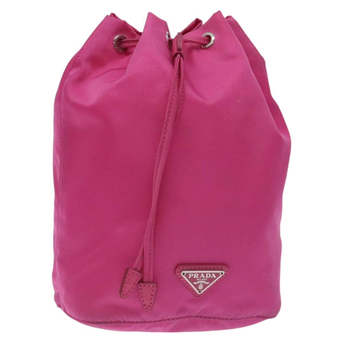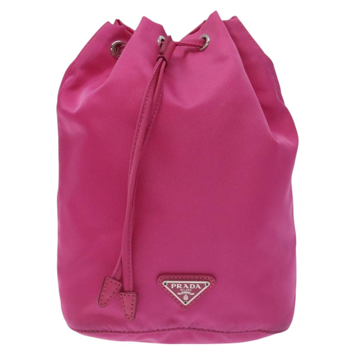 PRADA purse Pouch Nylon Pink Silver Auth 128784M