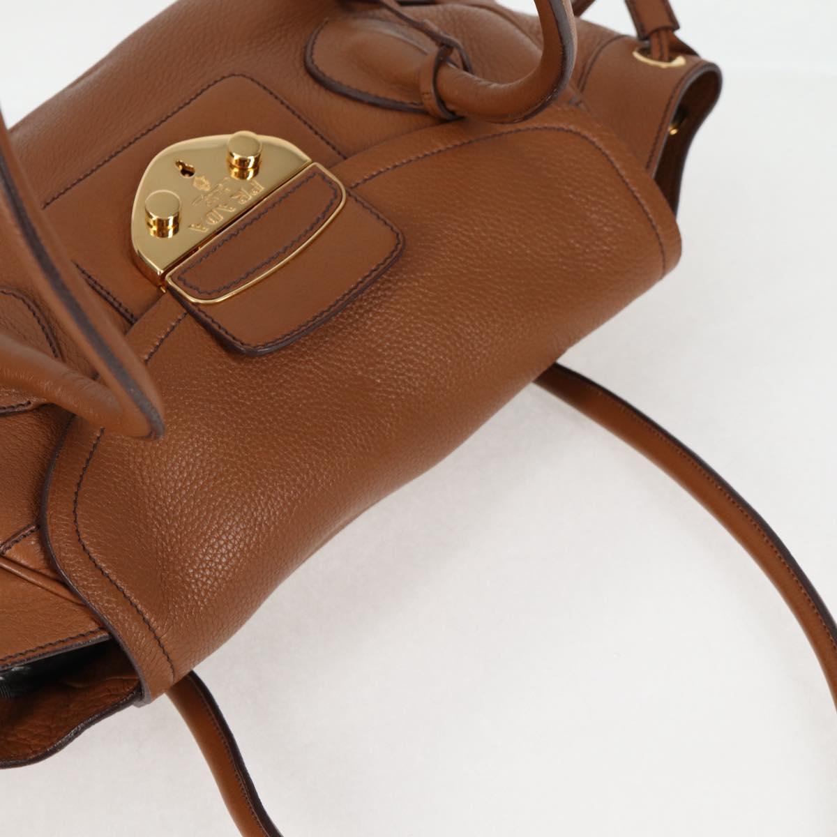 PRADA Shoulder Bag Leather Brown Gold BR3116 Auth yk18318M