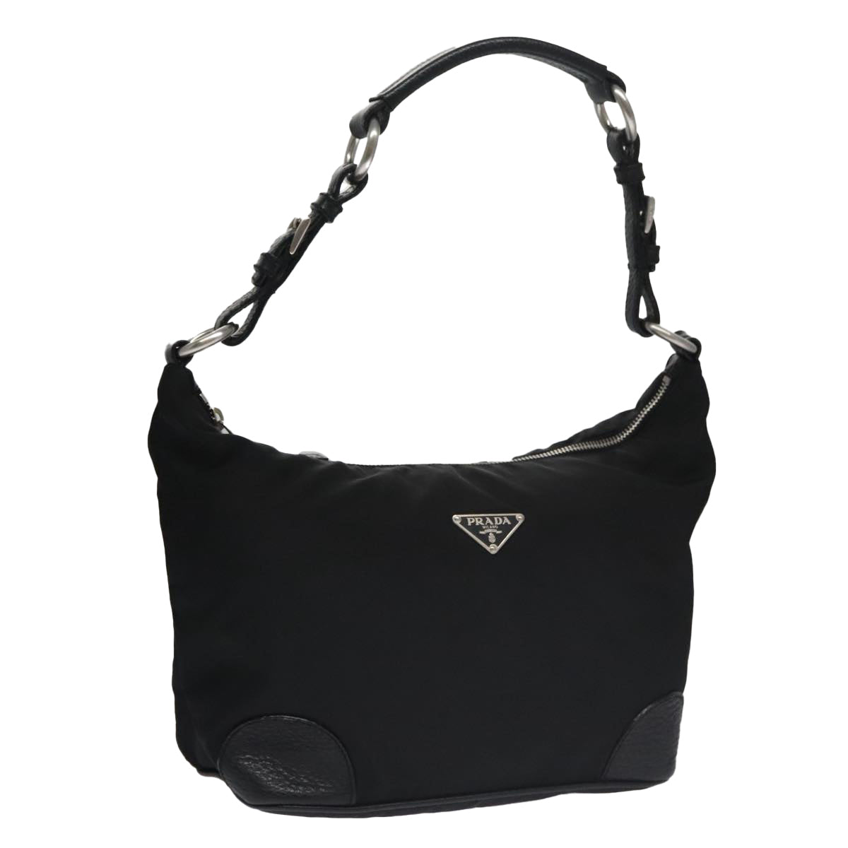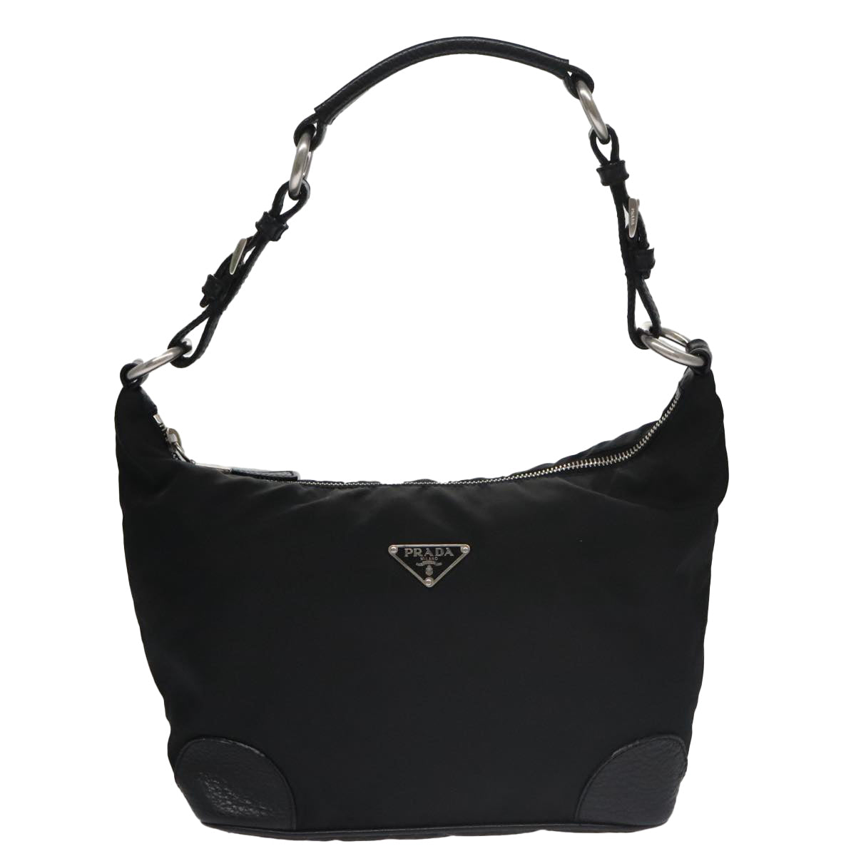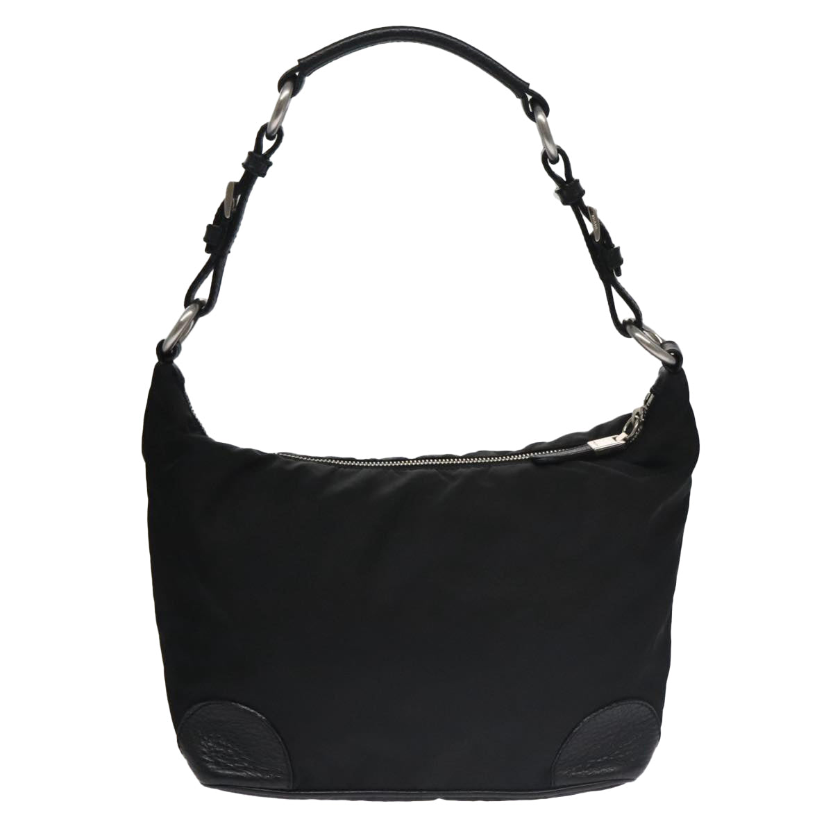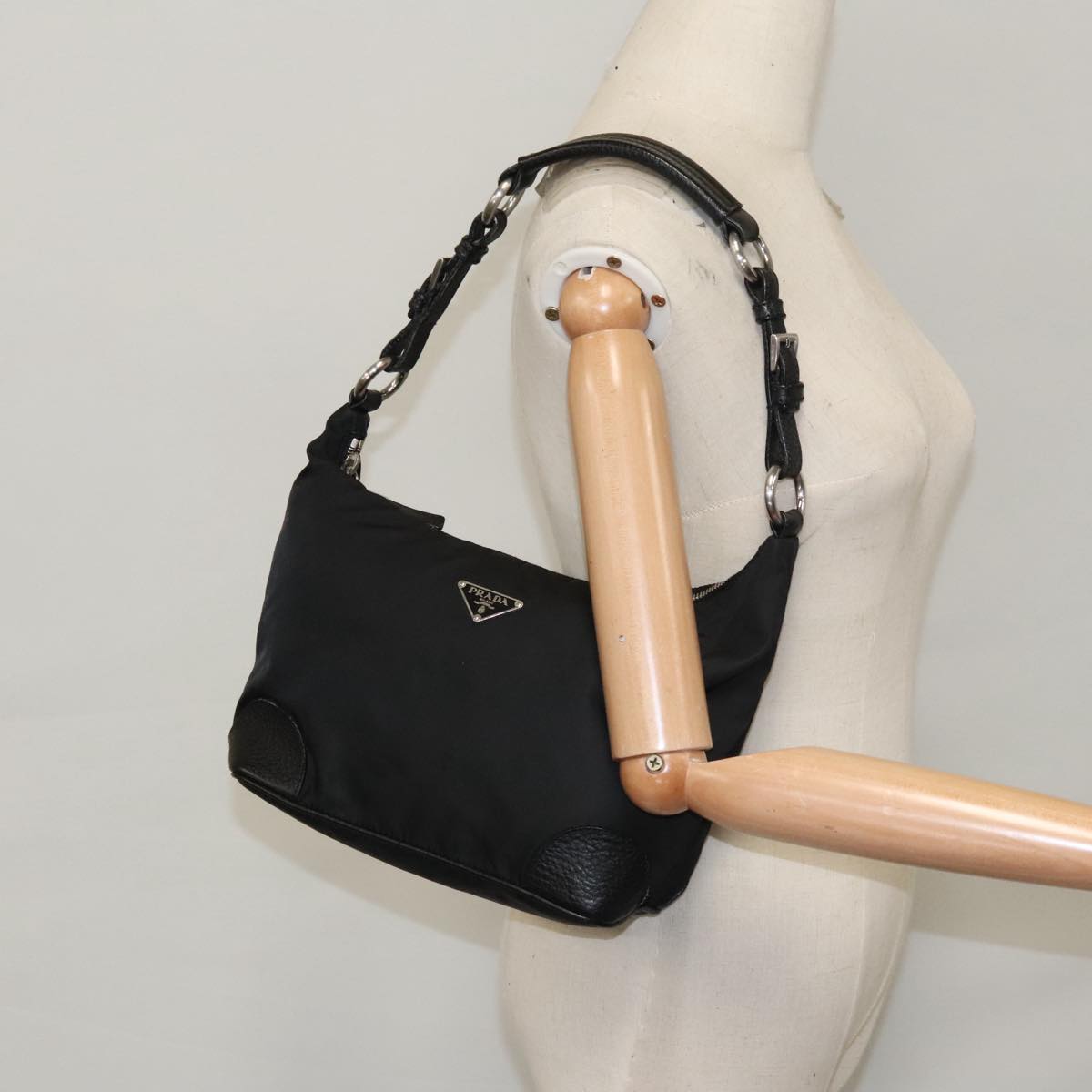 PRADA Shoulder Bag Nylon Black Silver Auth 102748V