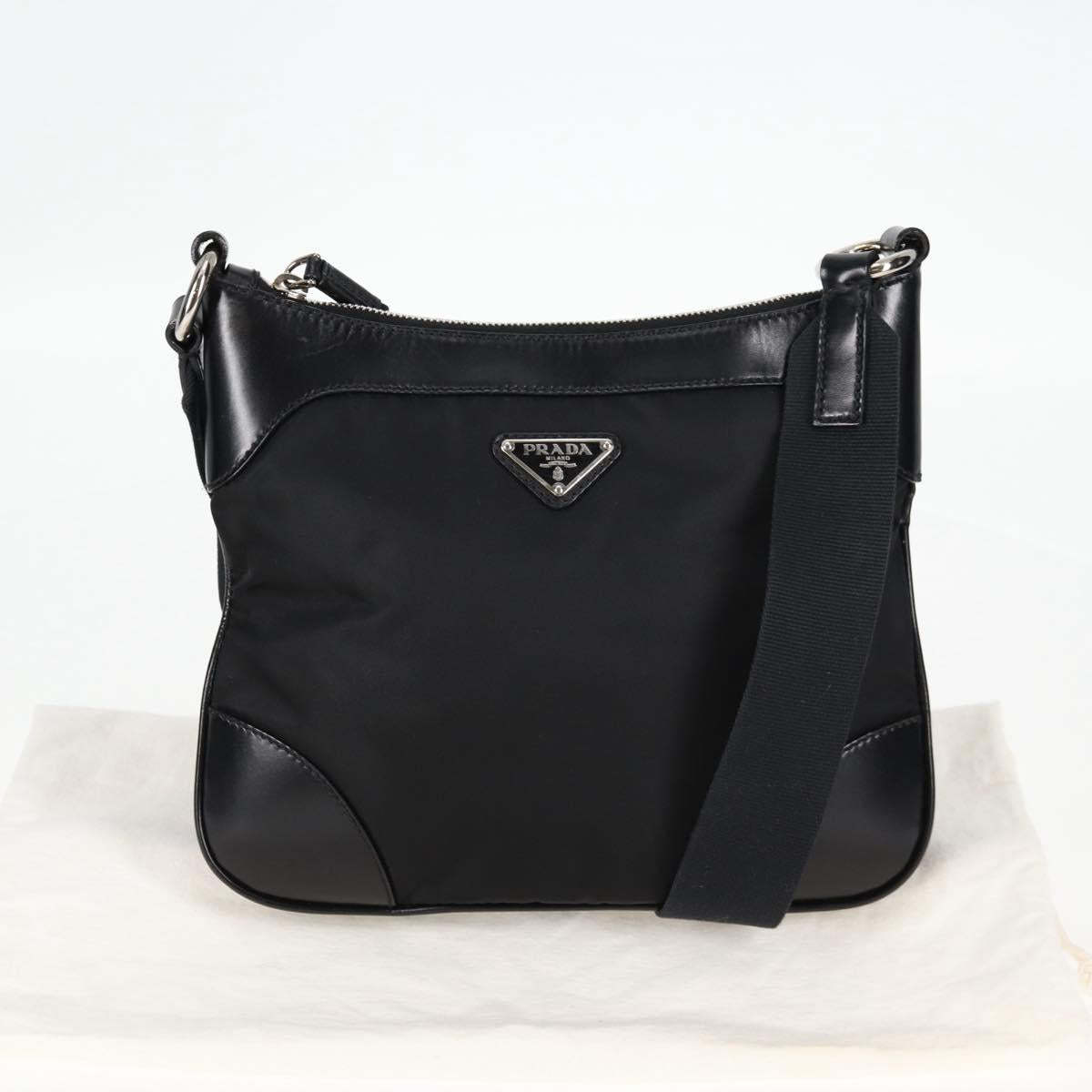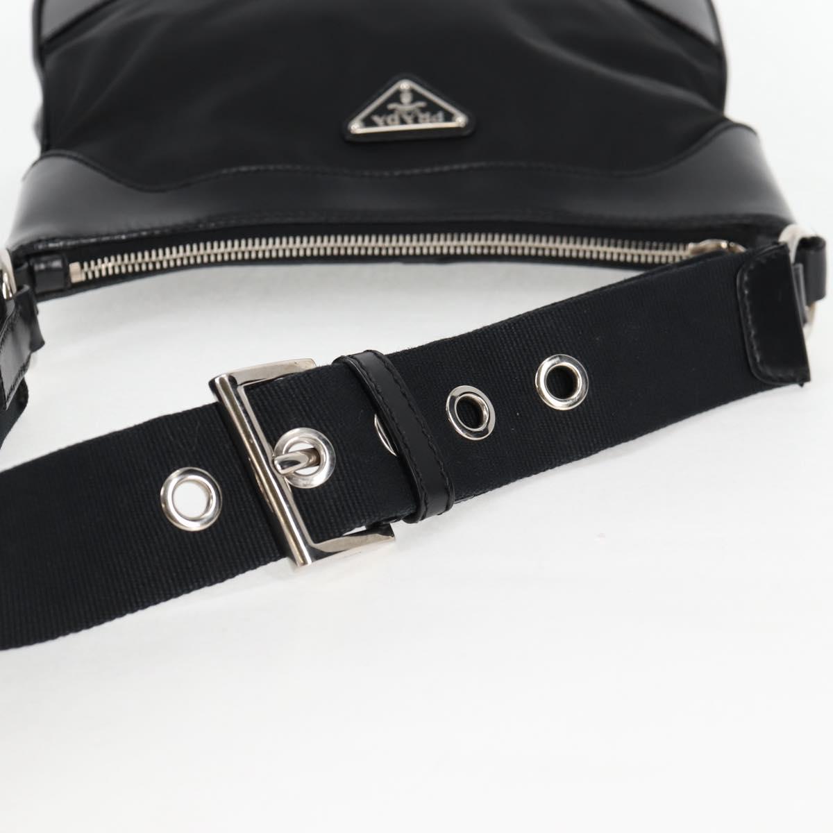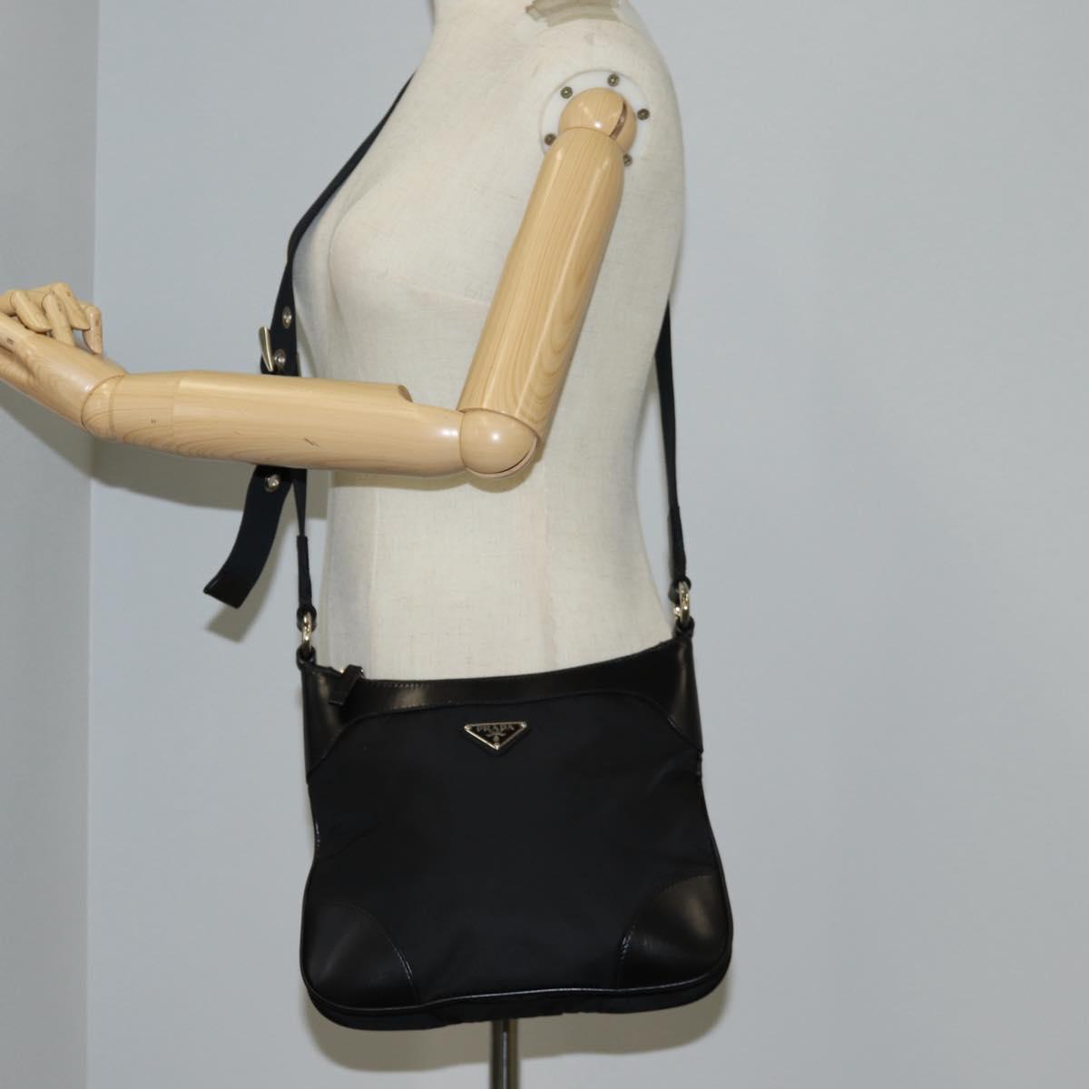 PRADA Shoulder Bag Nylon Black Silver Auth 124249V