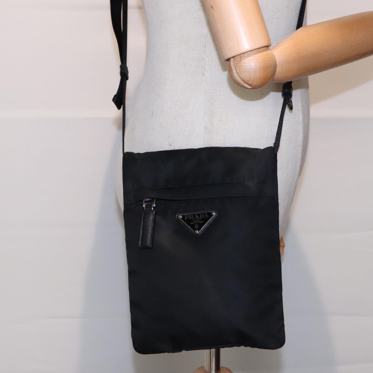 PRADA Shoulder Bag Nylon Black Silver Auth yk15056V