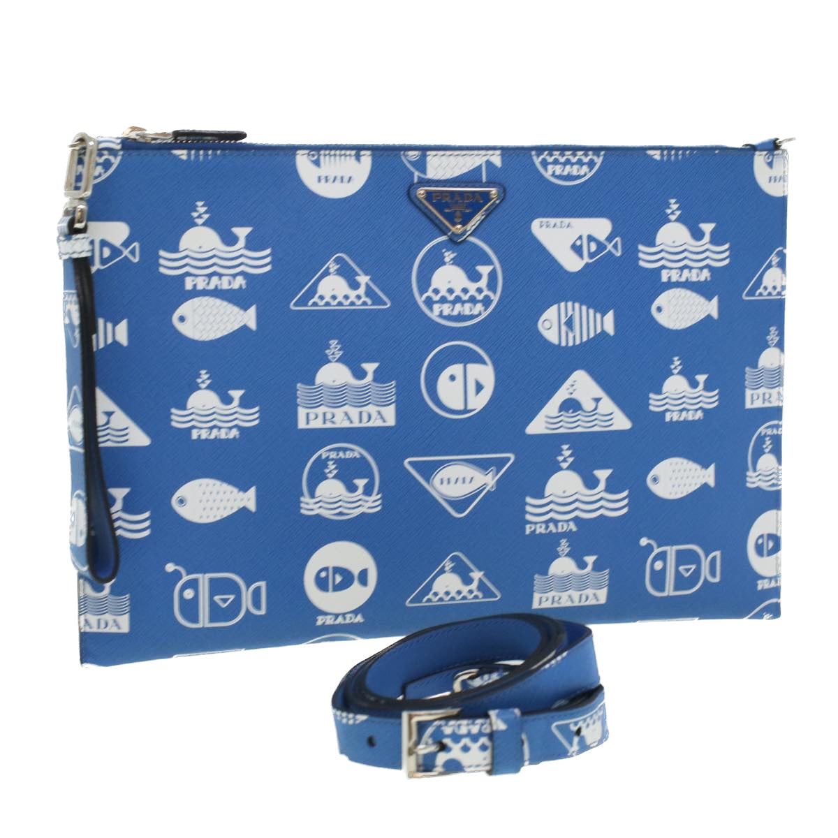 PRADA Shoulder Bag Safiano Leather Light Blue Auth ar8307V