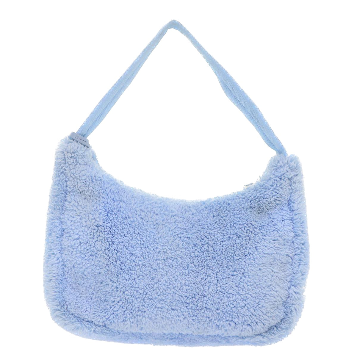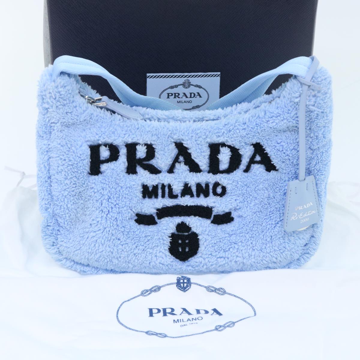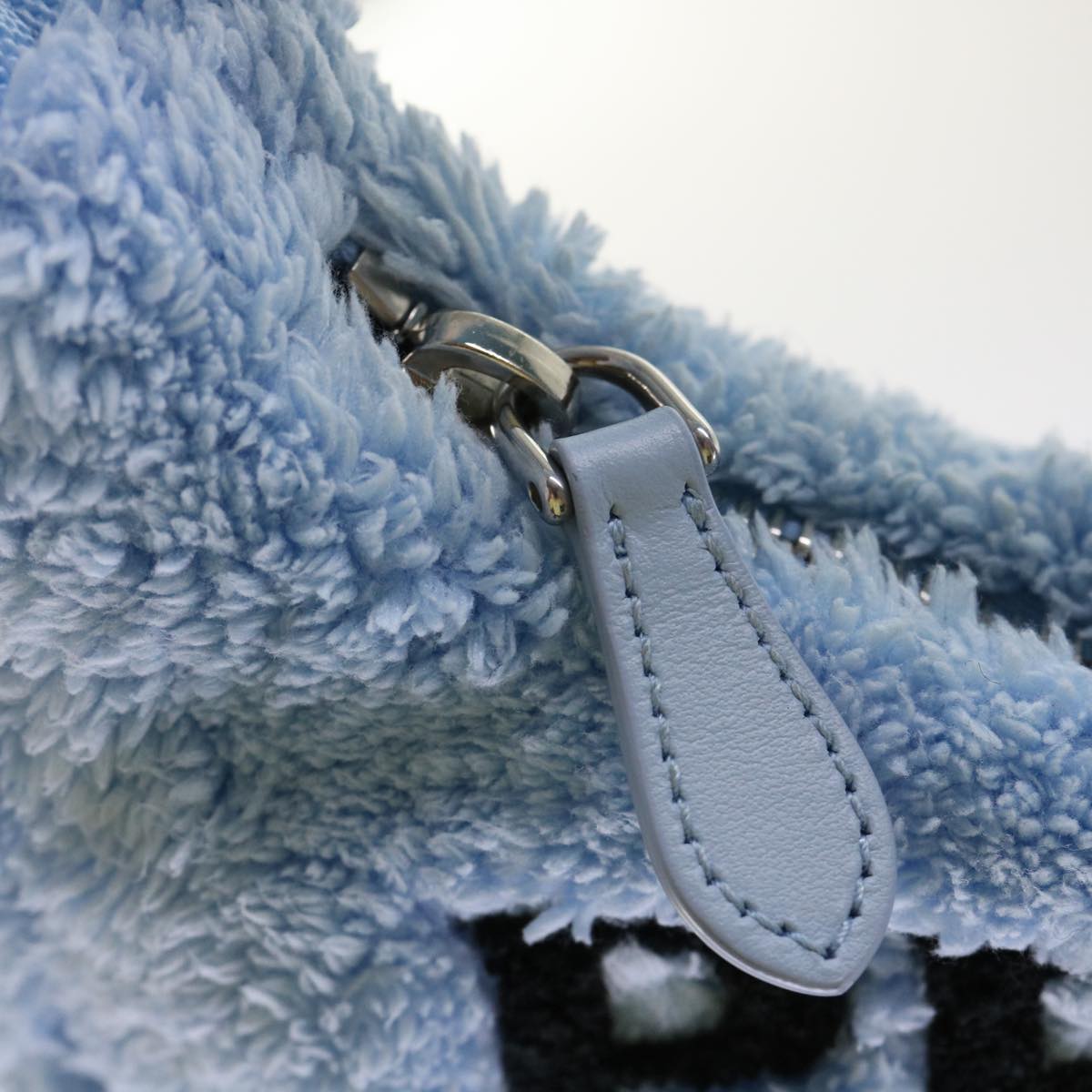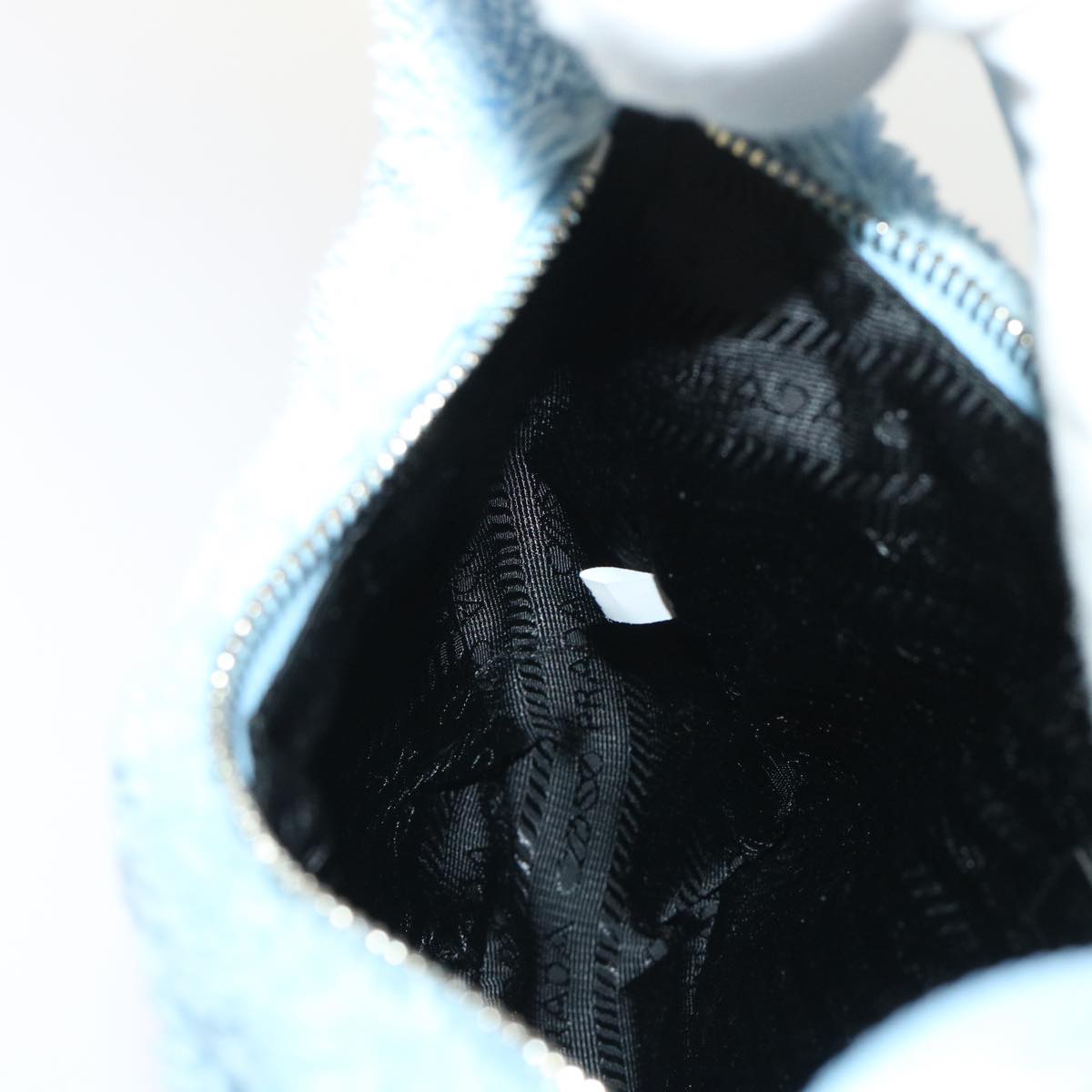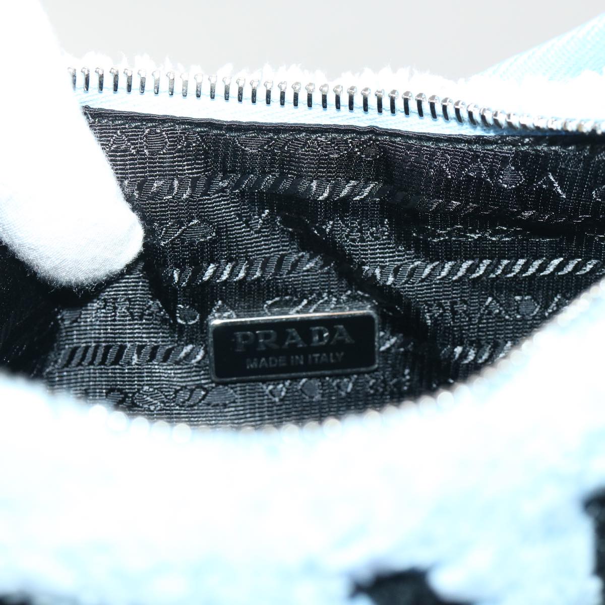 PRADA Terry Hand Bag Fabric Light Blue Black Auth 47378AM