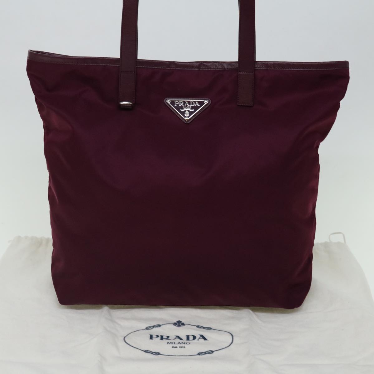 PRADA Tote Bag Nylon Wine Red Auth ki4335V