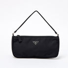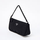 PRADA Triangle Hand Bag Black Silver Tessuto Auth