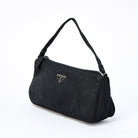 PRADA Triangle Hand Bag Black Silver Tessuto Auth