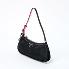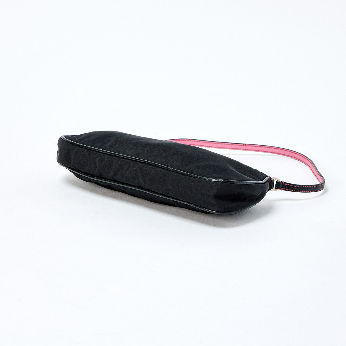 PRADA Triangle Shoulder Bag Black Pink Silver Tessuto Auth