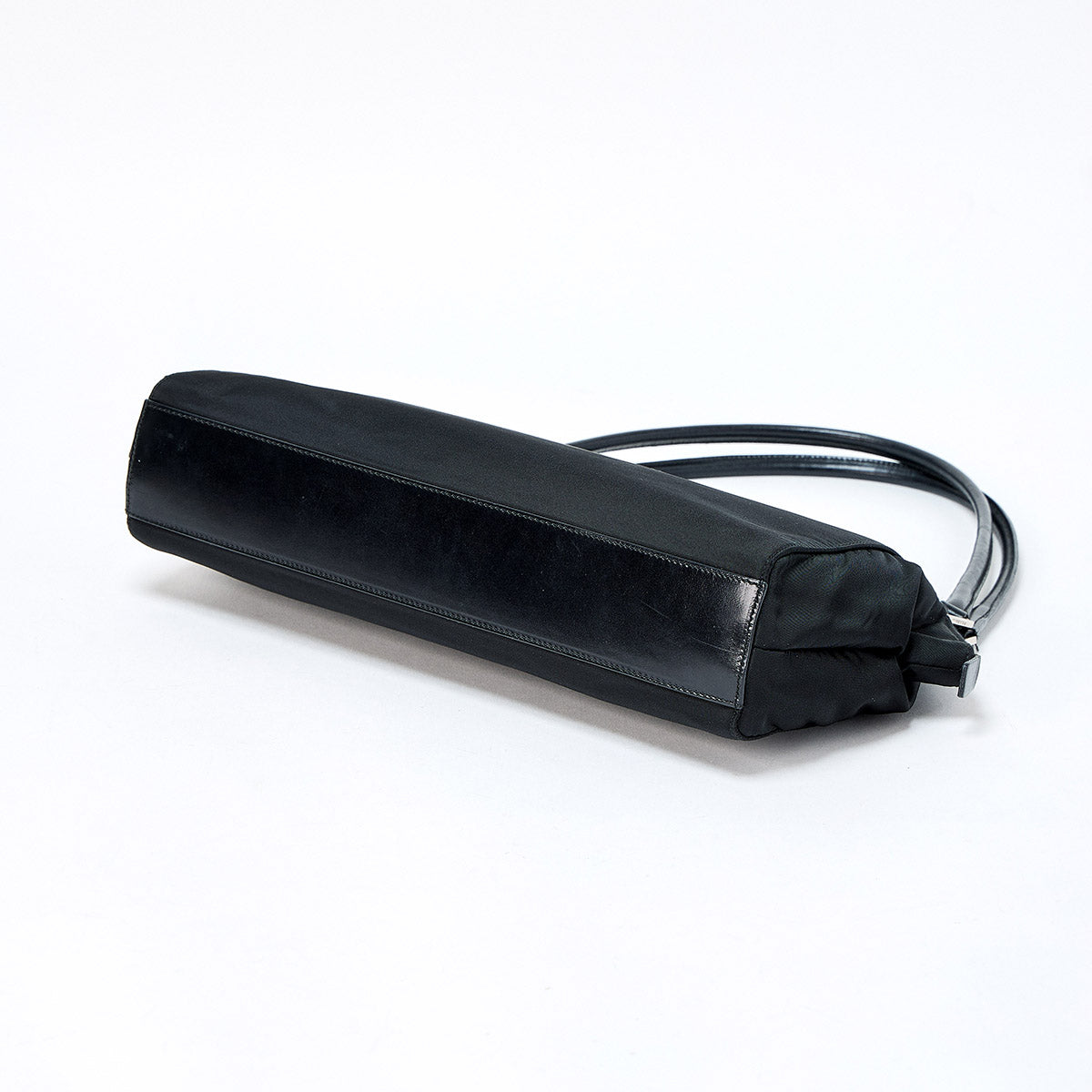 PRADA Triangle Shoulder Bag Black Silver Tessuto Auth