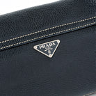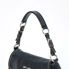 PRADA Triangle Shoulder Bag BR2074 Black Silver Leather Auth