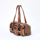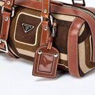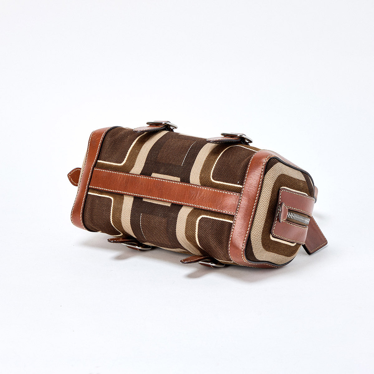 PRADA Triangle Shoulder Bag Brown Silver Canvas Leather Auth