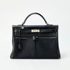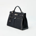 HERMES Kelly Raki 40 2005 □I Hand Bag Noir Silver Box Scarf Auth