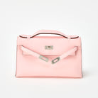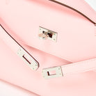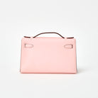 HERMES Pochette Kelly 2015 T Hand Bag Rose Sakura Silver Swift Leather Auth