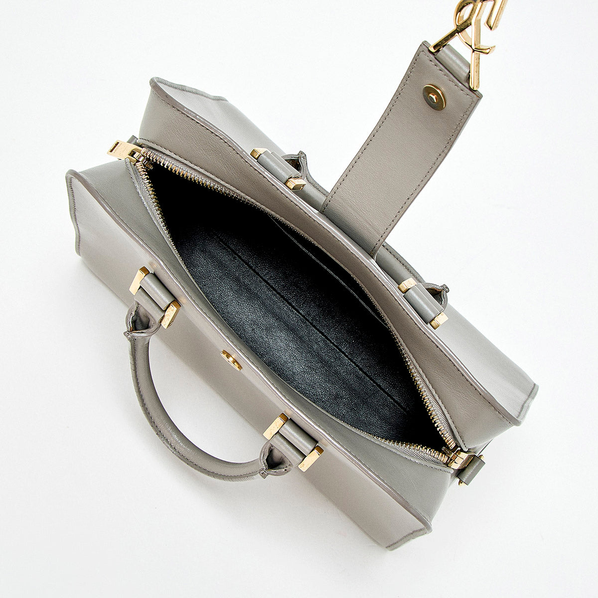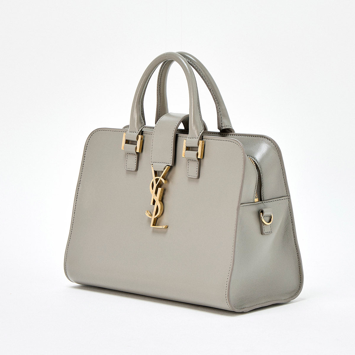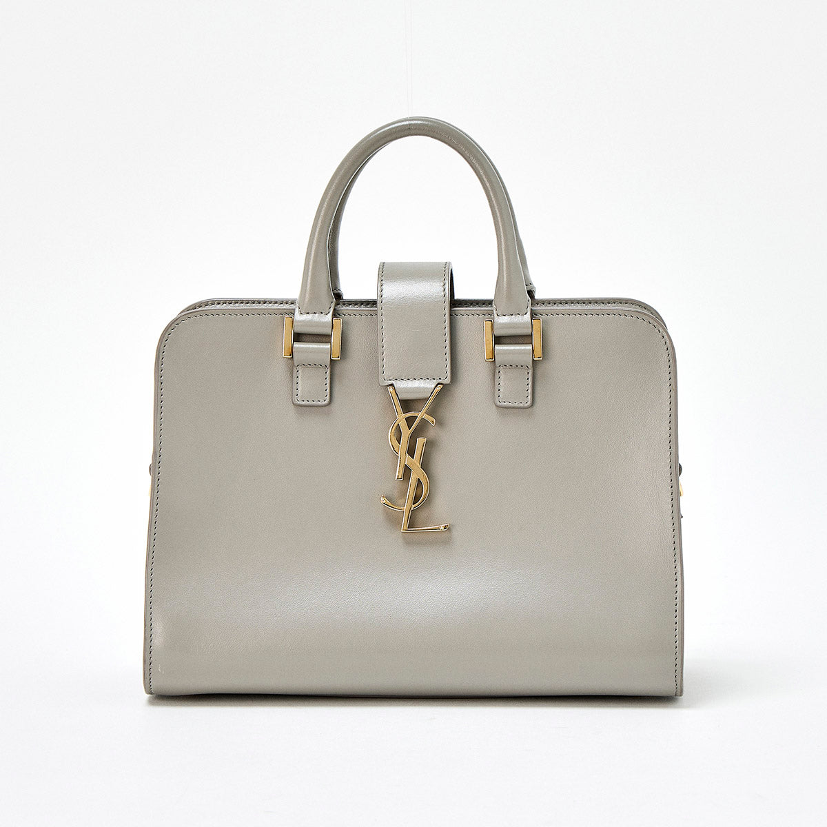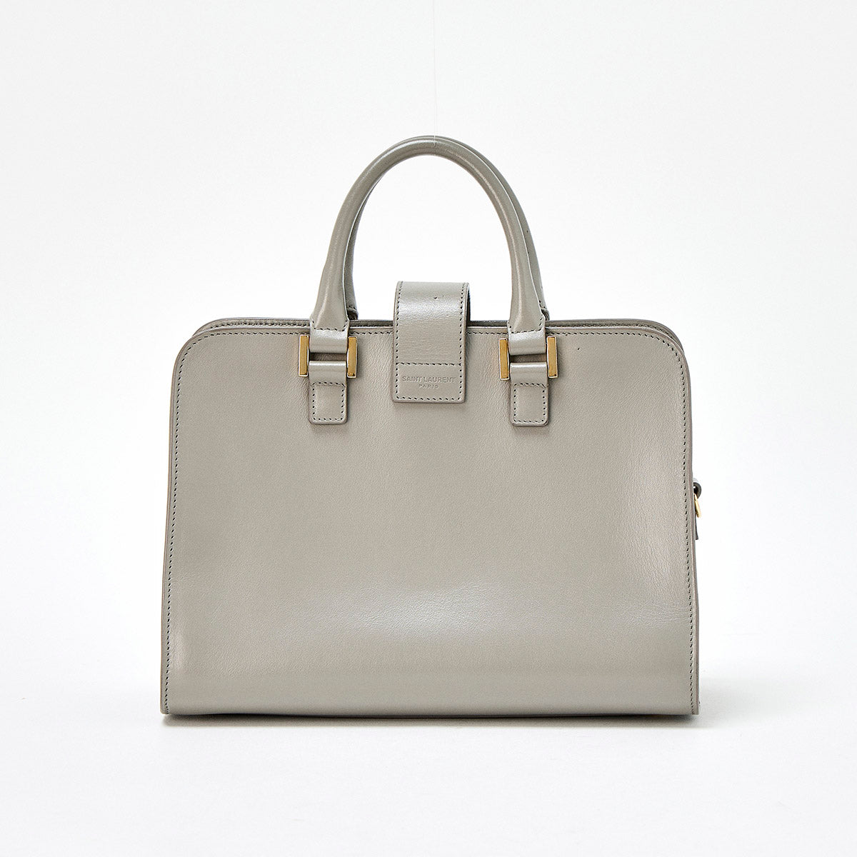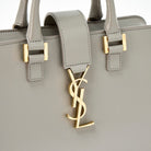 SAINT LAURENT Baby Cabas Handbag Grey Gold Leather Auth