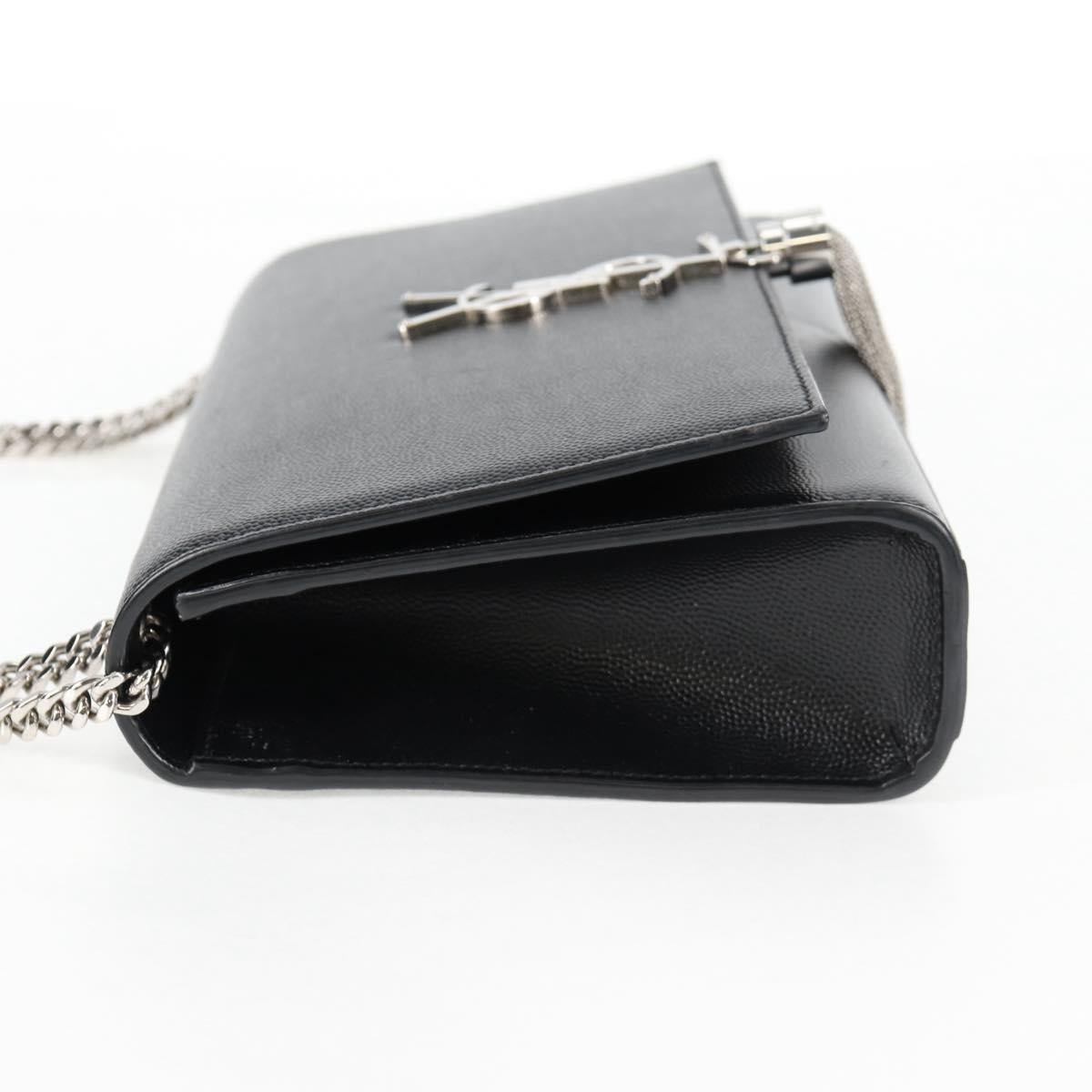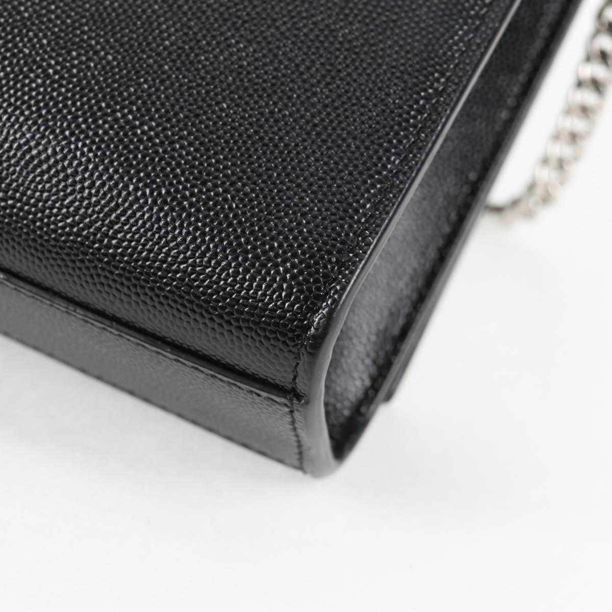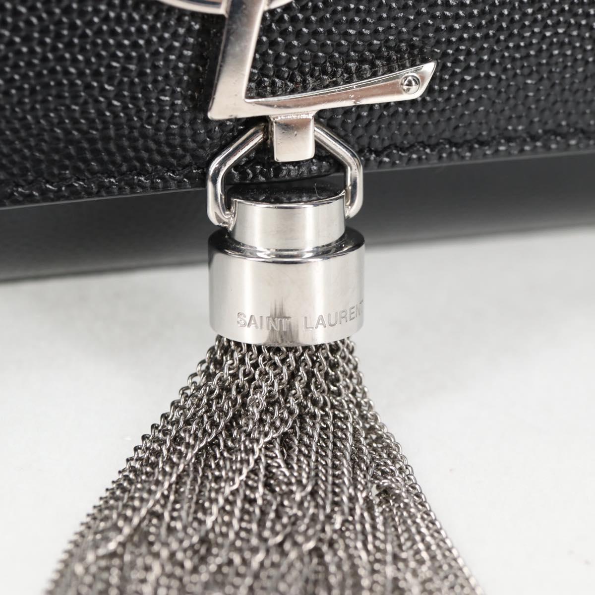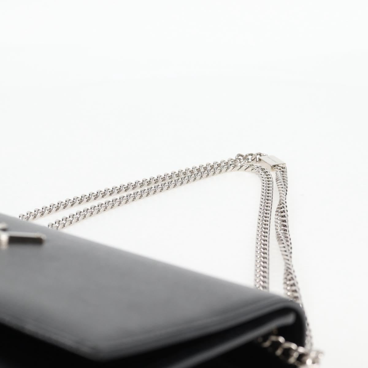 SAINT LAURENT Chain Shoulder Bag Leather Black Silver Auth 121273M