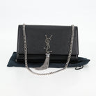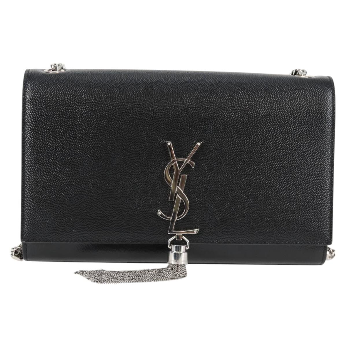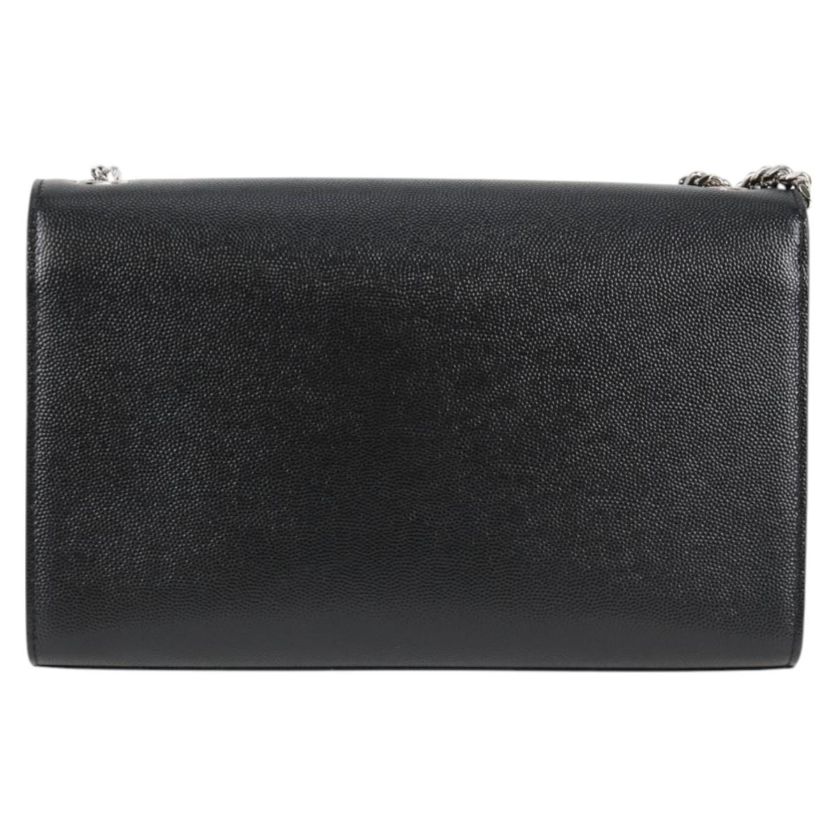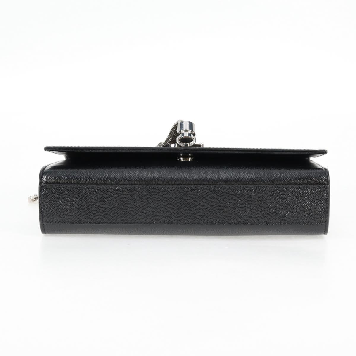 SAINT LAURENT Chain Shoulder Bag Leather Black Silver Auth 121273M