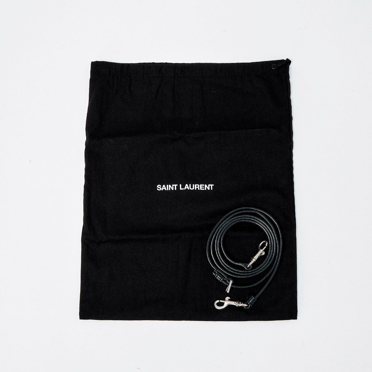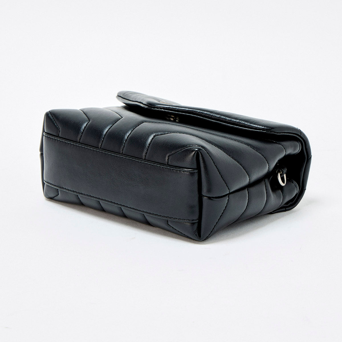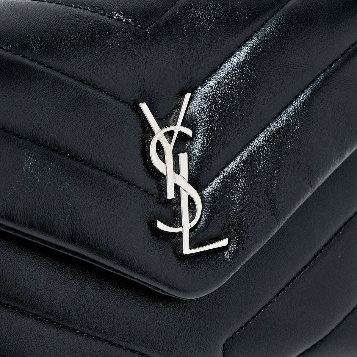 SAINT LAURENT Lulu Shoulder Bag Black Silver Leather Auth