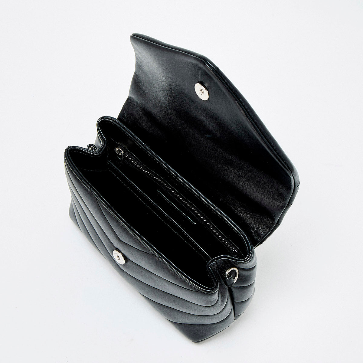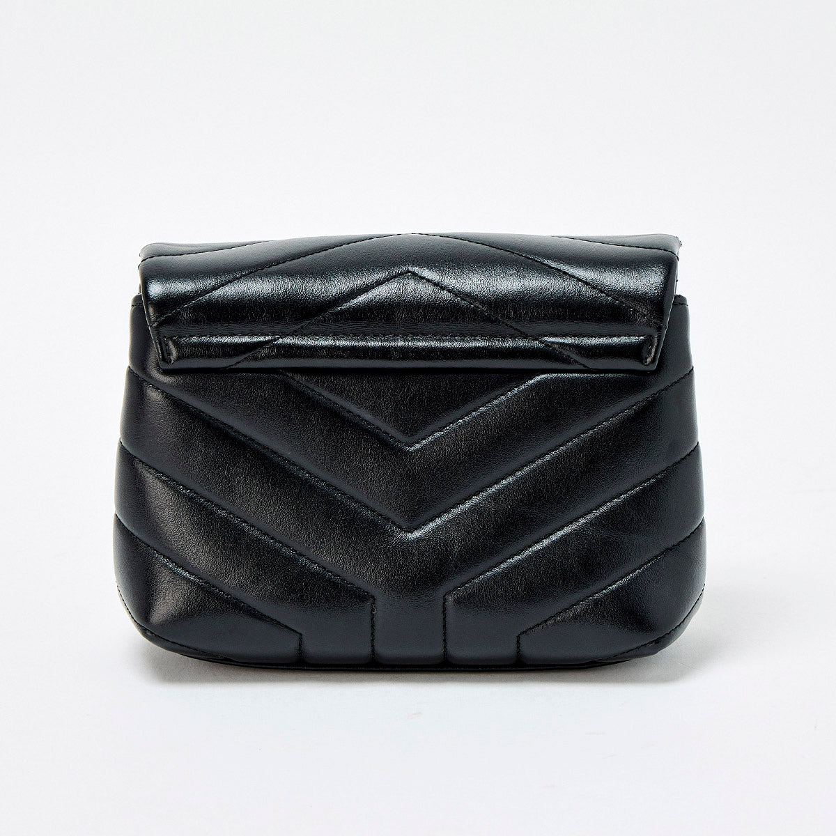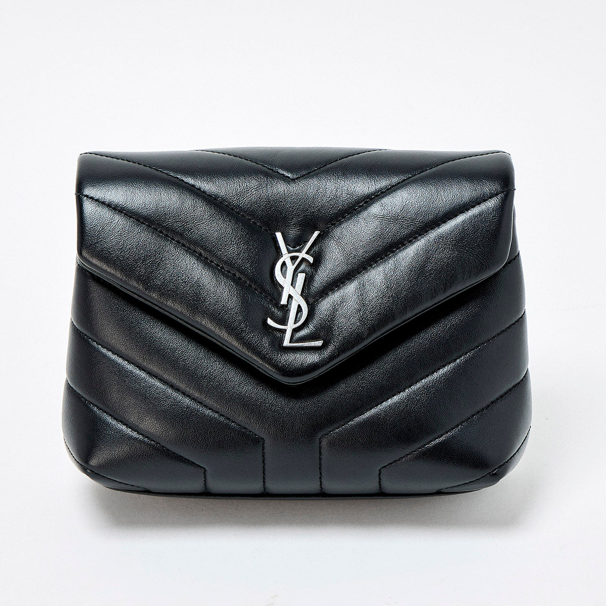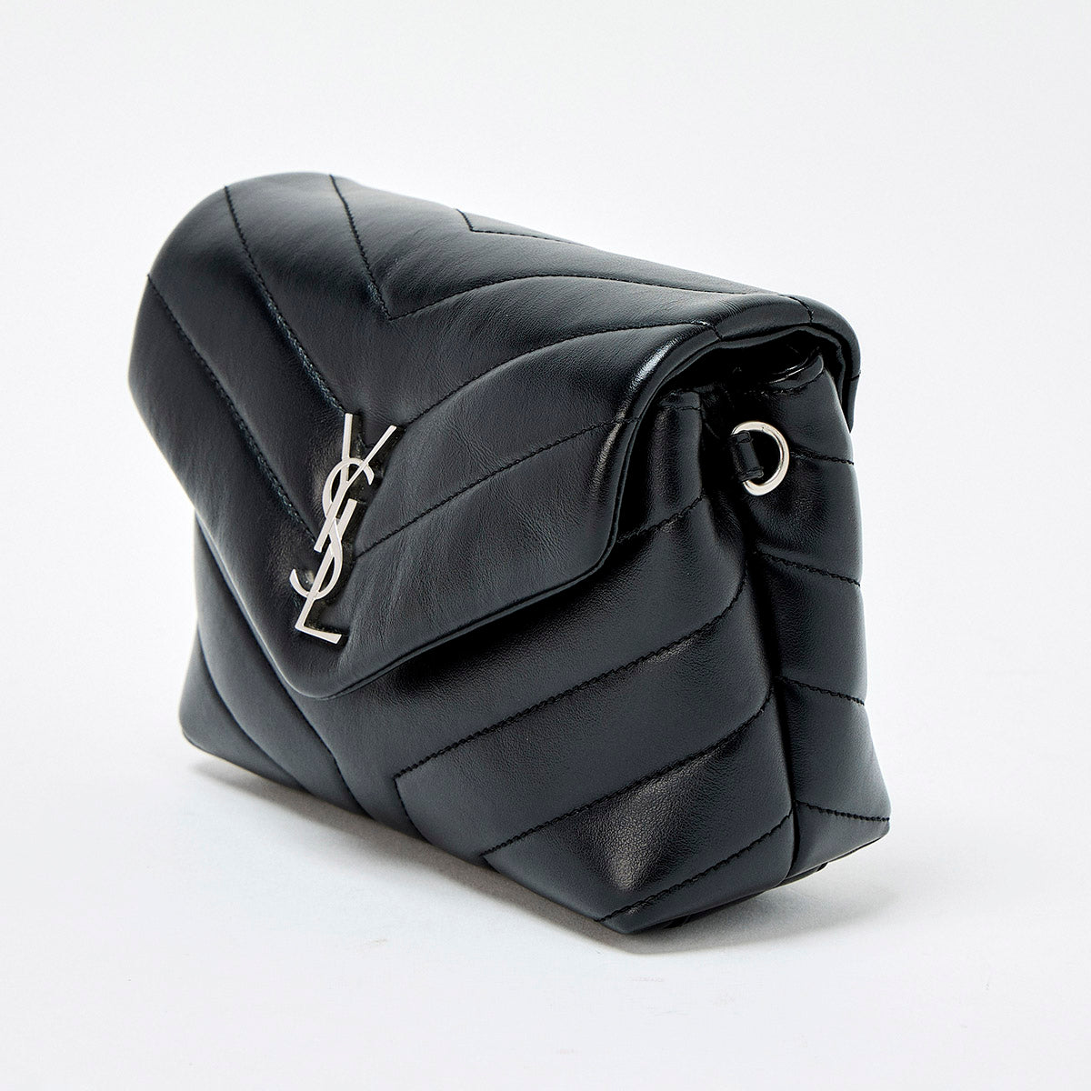 SAINT LAURENT Lulu Shoulder Bag Black Silver Leather Auth