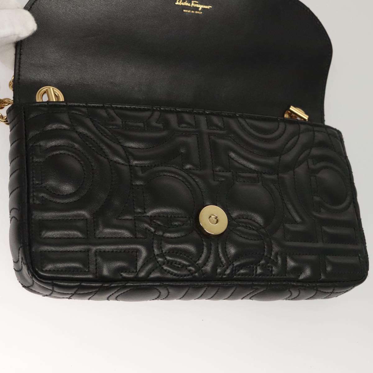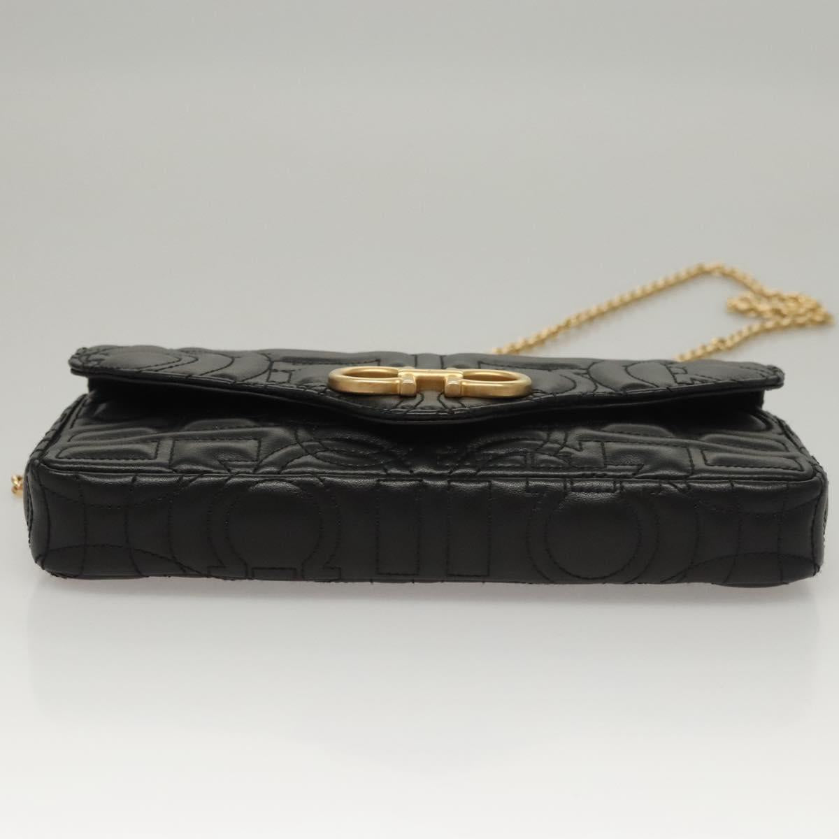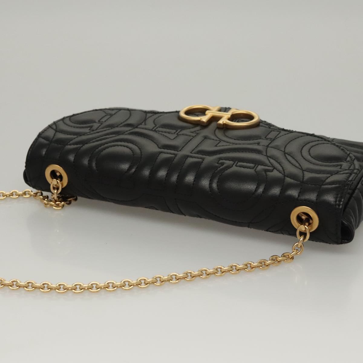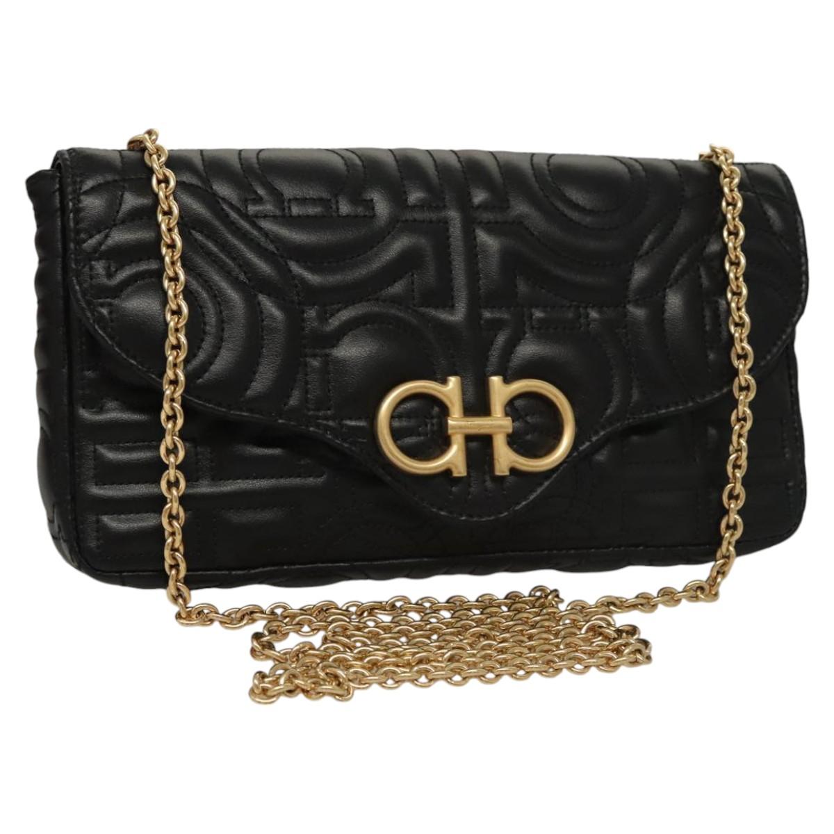Salvatore Ferragamo Chain Gancini Shoulder Bag Leather Black Gold Auth 116254AM